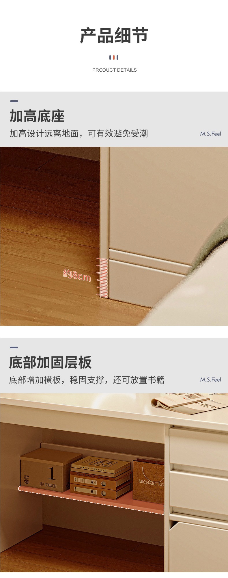 • + 크로스보더 + [시장 모델] LED 조명 [캐비닛 2개와 서랍 1개] 80cm 웜화이트