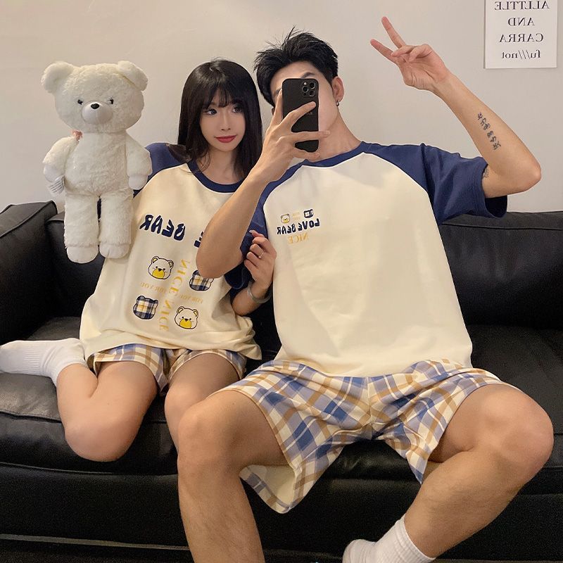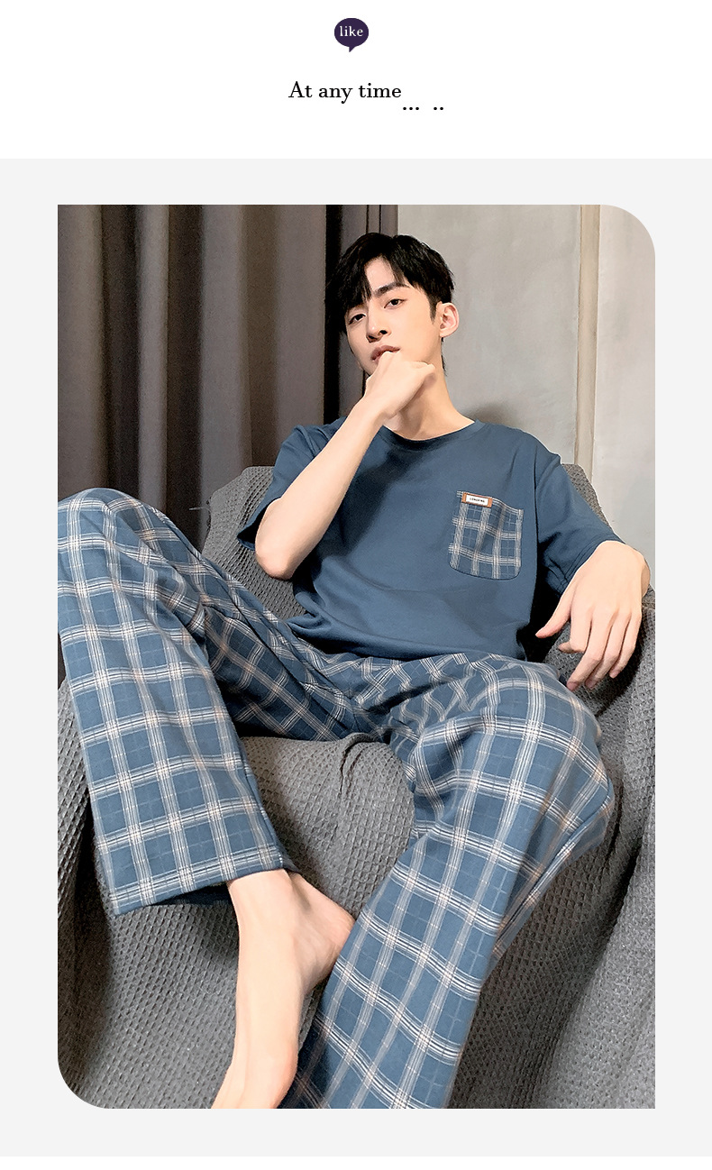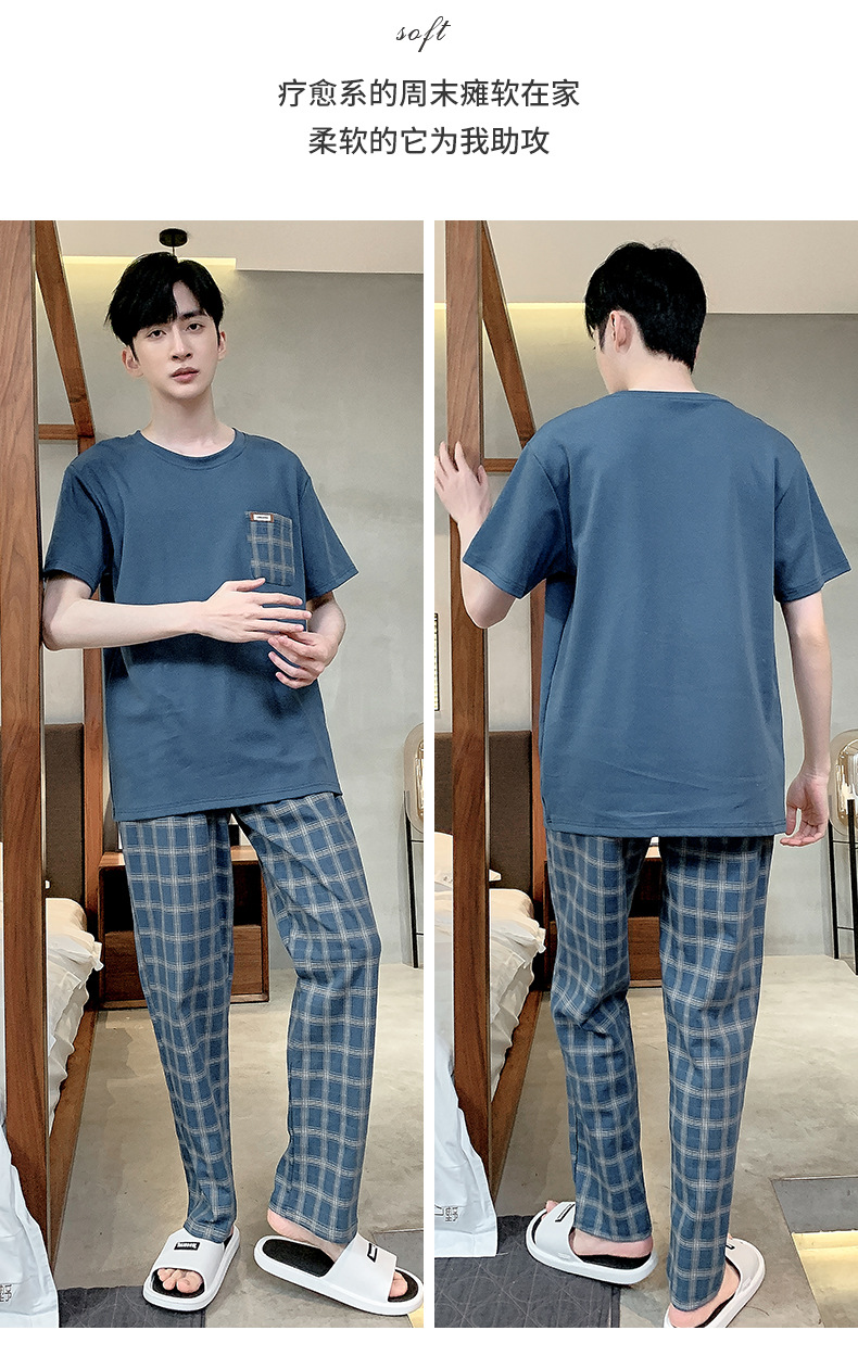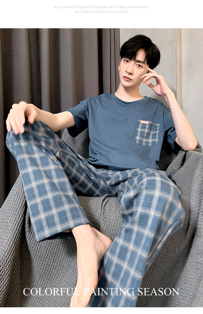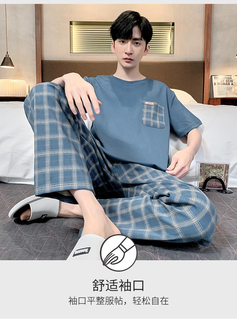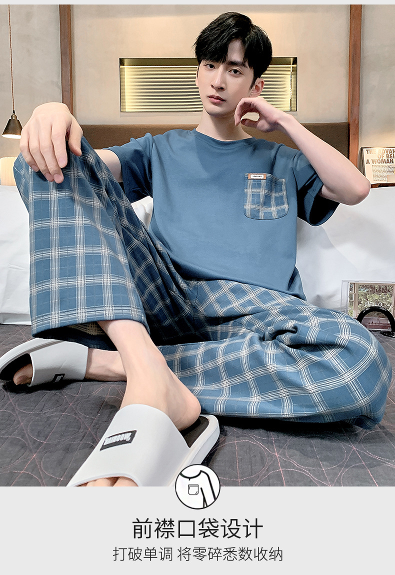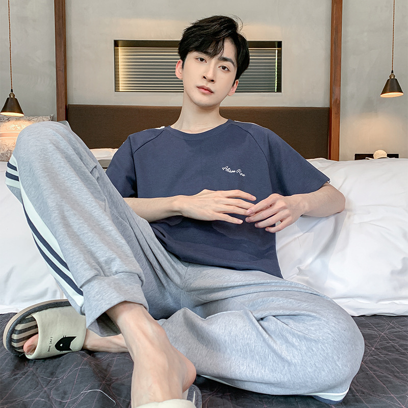 잠옷 남자 여름 반팔 바지 간단한 홈 젊은 학생 및 남성 플러스 사이즈 얇은 면 캐주얼 잠옷스토어 가기