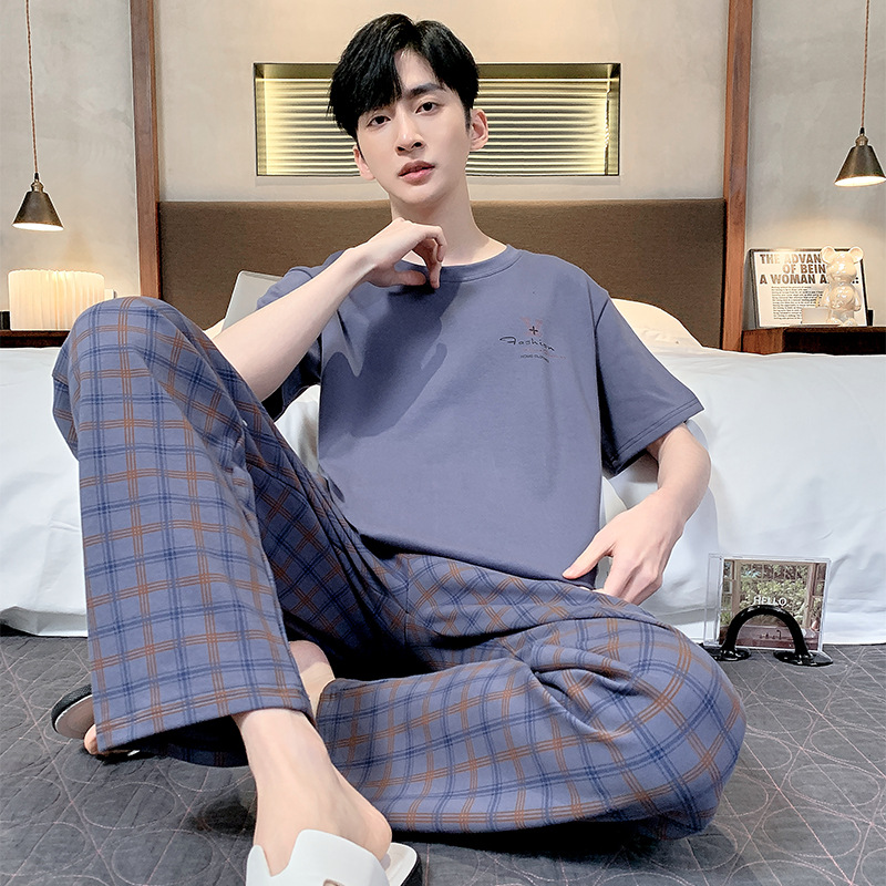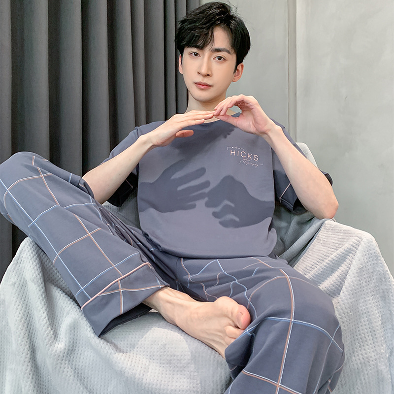 잠옷 남자 여름 반팔 바지 간단한 홈 젊은 학생 및 남성 플러스 사이즈 얇은 면 캐주얼 잠옷