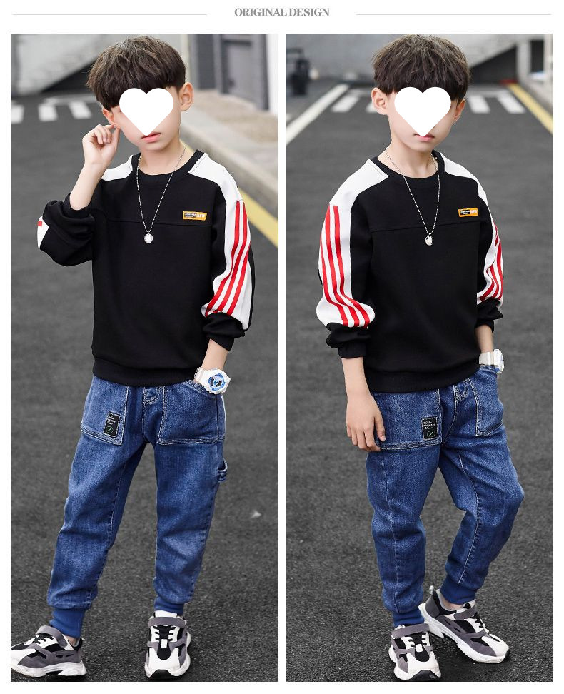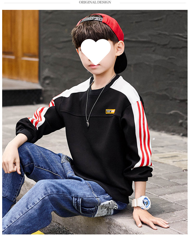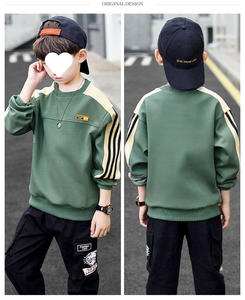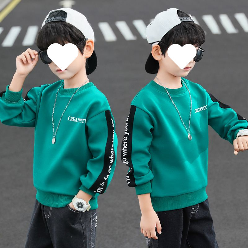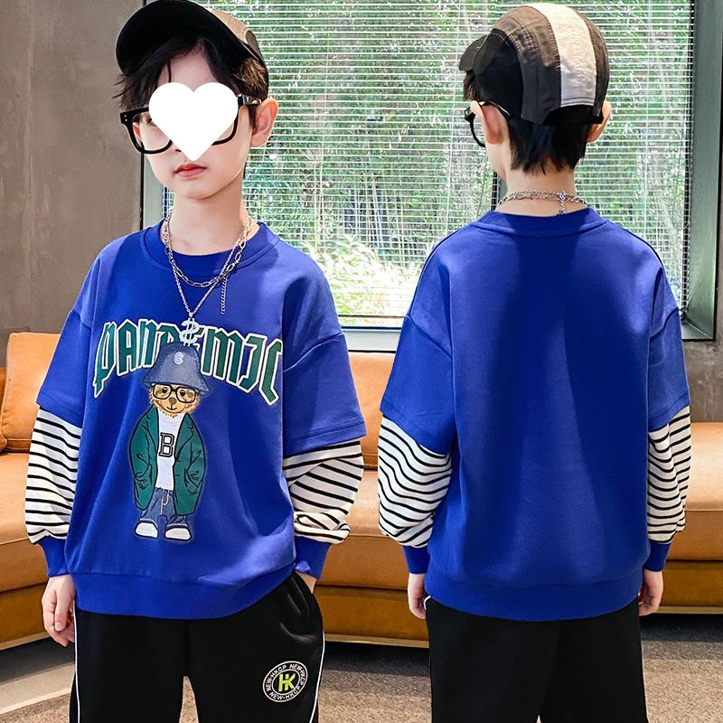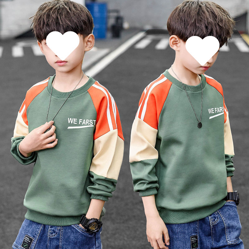 남자들의 봄 긴 소매 티셔츠 웨스턴 스타일 2025 새로운 스타일 중대형 어린이 봄과 가을베이스 셔츠 어린이 스웨터 트렌디 티셔츠스토어 가기