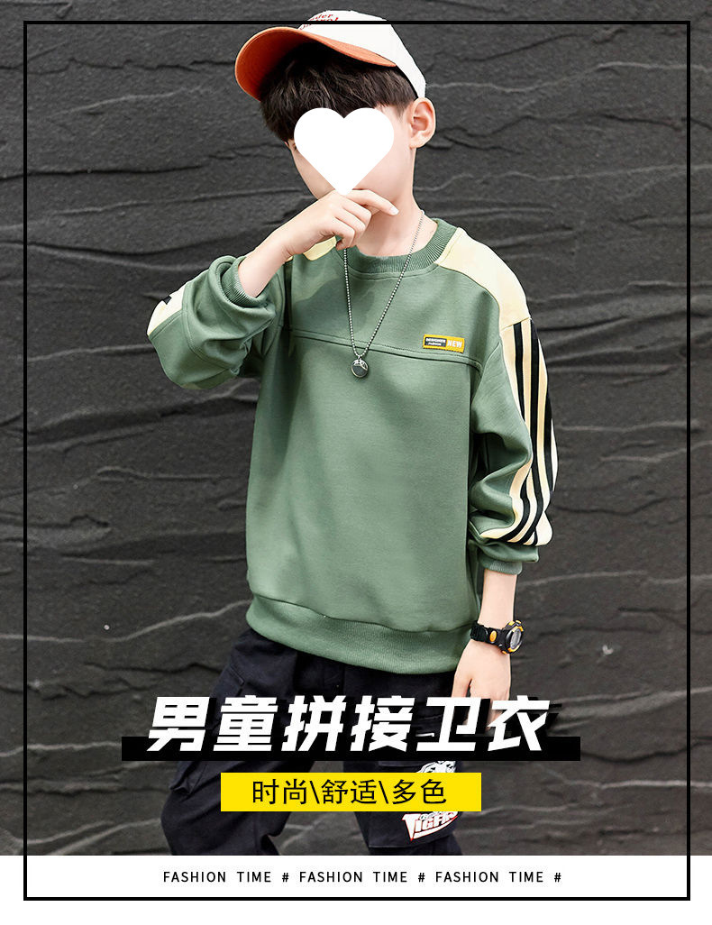 남자들의 봄 긴 소매 티셔츠 웨스턴 스타일 2025 새로운 스타일 중대형 어린이 봄과 가을베이스 셔츠 어린이 스웨터 트렌디 티셔츠