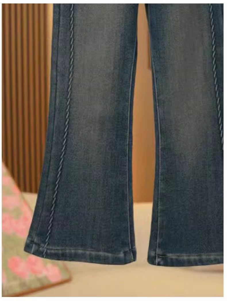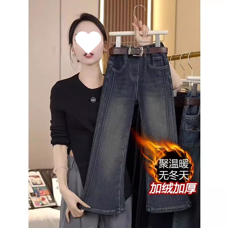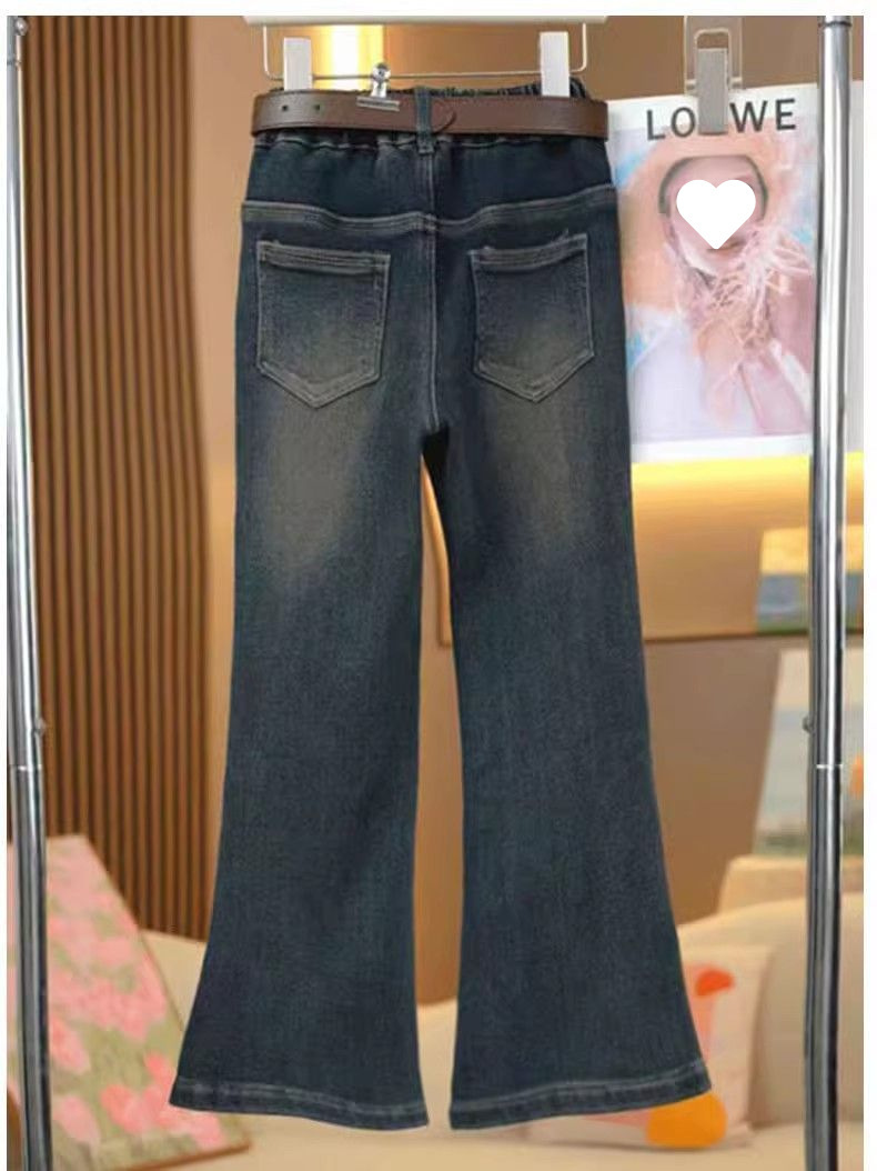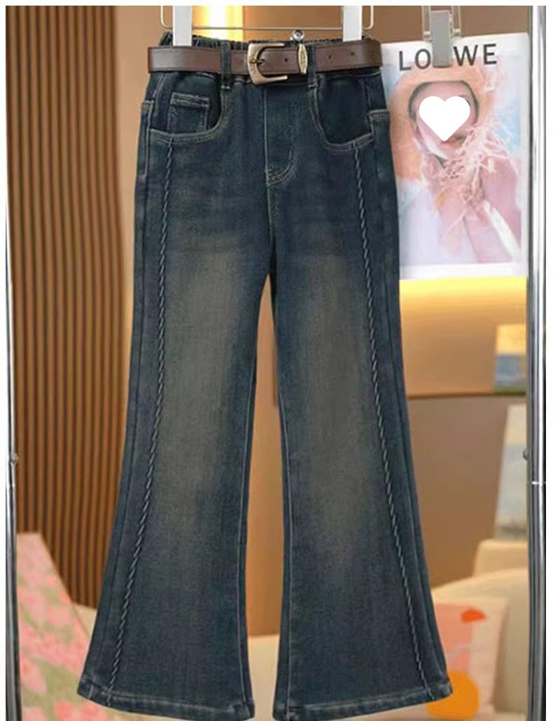 소녀 기모 청바지 2025 겨울 새로운 서양식 중 큰 어린이 겨울 패션 어린이 탄성 경적 바지스토어 가기