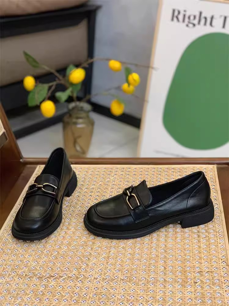 첫 번째 레이어 소 가죽 ~ 정품 가죽 신발 소프트 솔 슬립 온 로퍼 여성 신발 봄과 여름 2025 새로운 평면 단일 레이어 신발스토어 가기