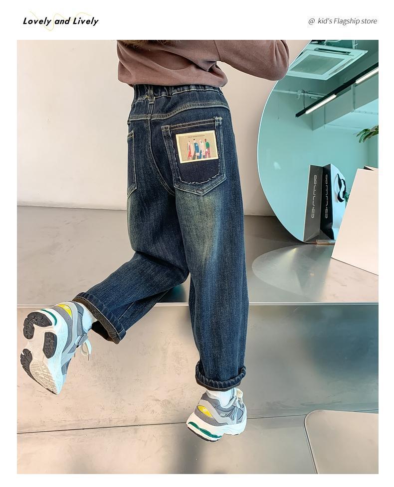 소녀 기모 청바지 2025 겨울 폭발 서양식 원피스 벨벳 두꺼운 바지 느슨한 슈퍼 소프트 따뜻한 아우터스토어 가기