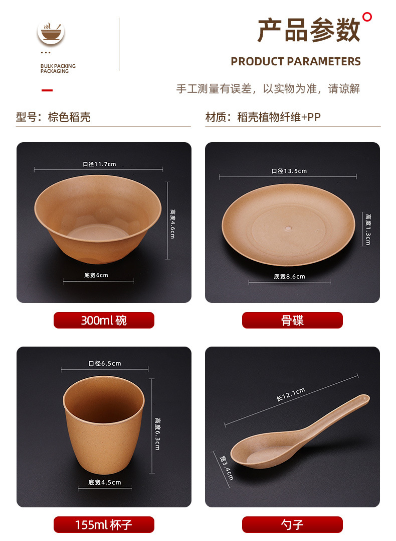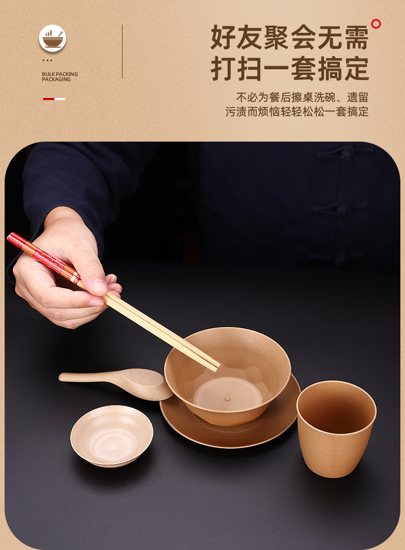 ✅쌀쉘 일회용 식기 그릇 젓가락 세트 두꺼운 보울 컵 플레이트 스푼 피크닉 케이터링 웨딩 연회 가정용 4 피스 세트 배치