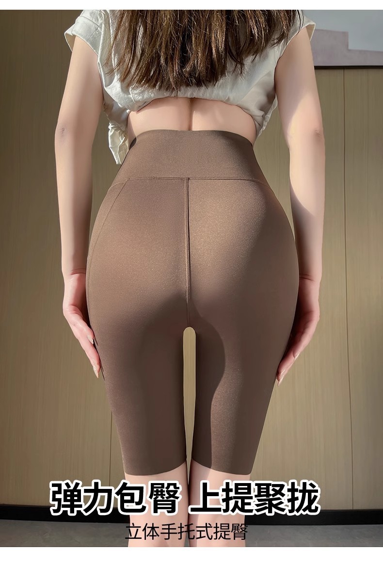 5 점 상어 바지 여자 2025 년 여름 새로운 높은 허리 얼음 실크 얇은 레깅스 엉덩이 외부 착용 요가 승마 바지스토어 가기