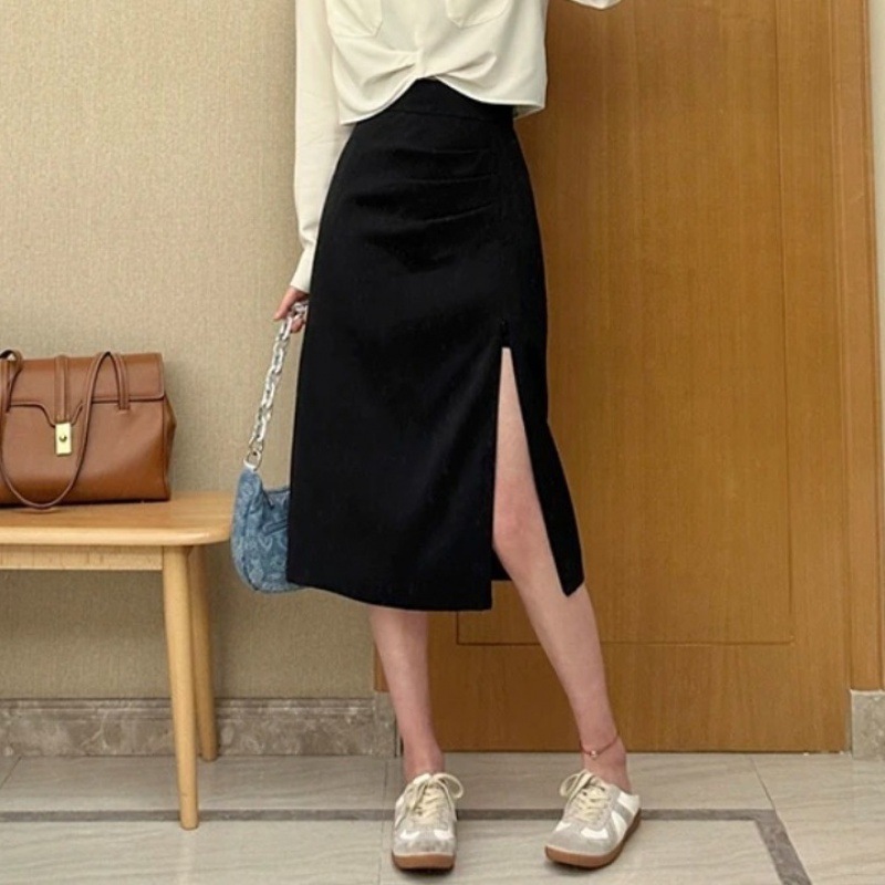 장아 싱 2025 봄 새로운 허리 주름 슬림 셔츠 지퍼 조정 가능한 벤트 스커트 2 피스 세트스토어 가기