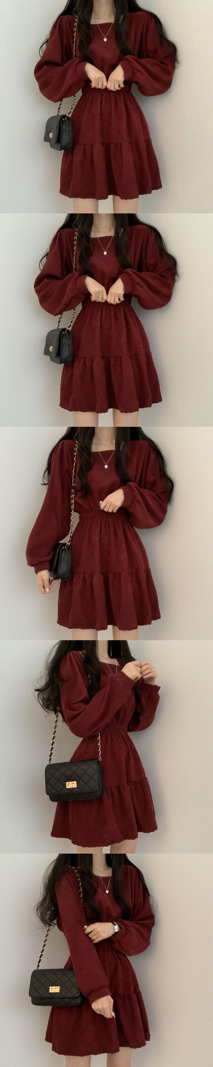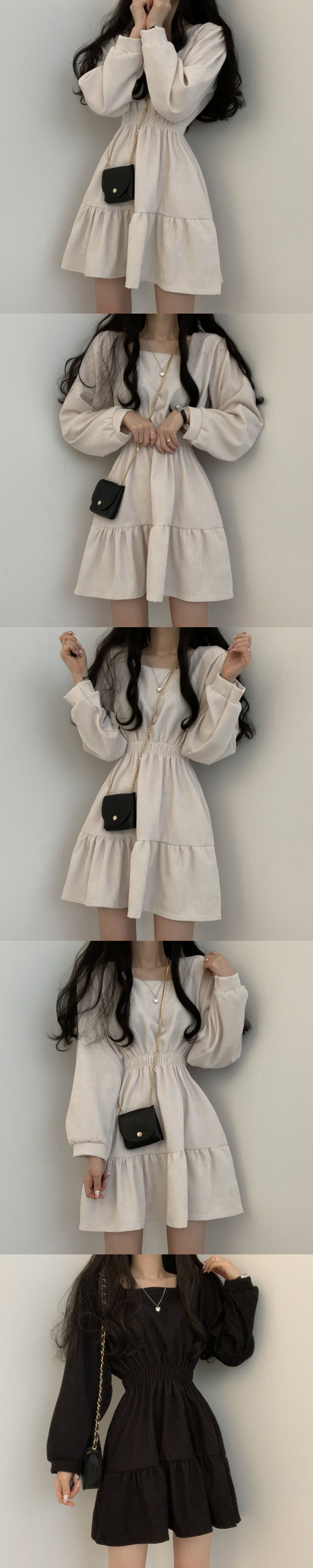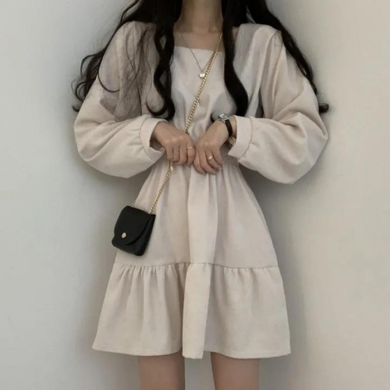 스퀘어 칼라 슬리밍 주름 달콤한 가리 에이지 감소 느슨한 높은 허리 레트로 작은 인형 원피스 한펑스토어 가기