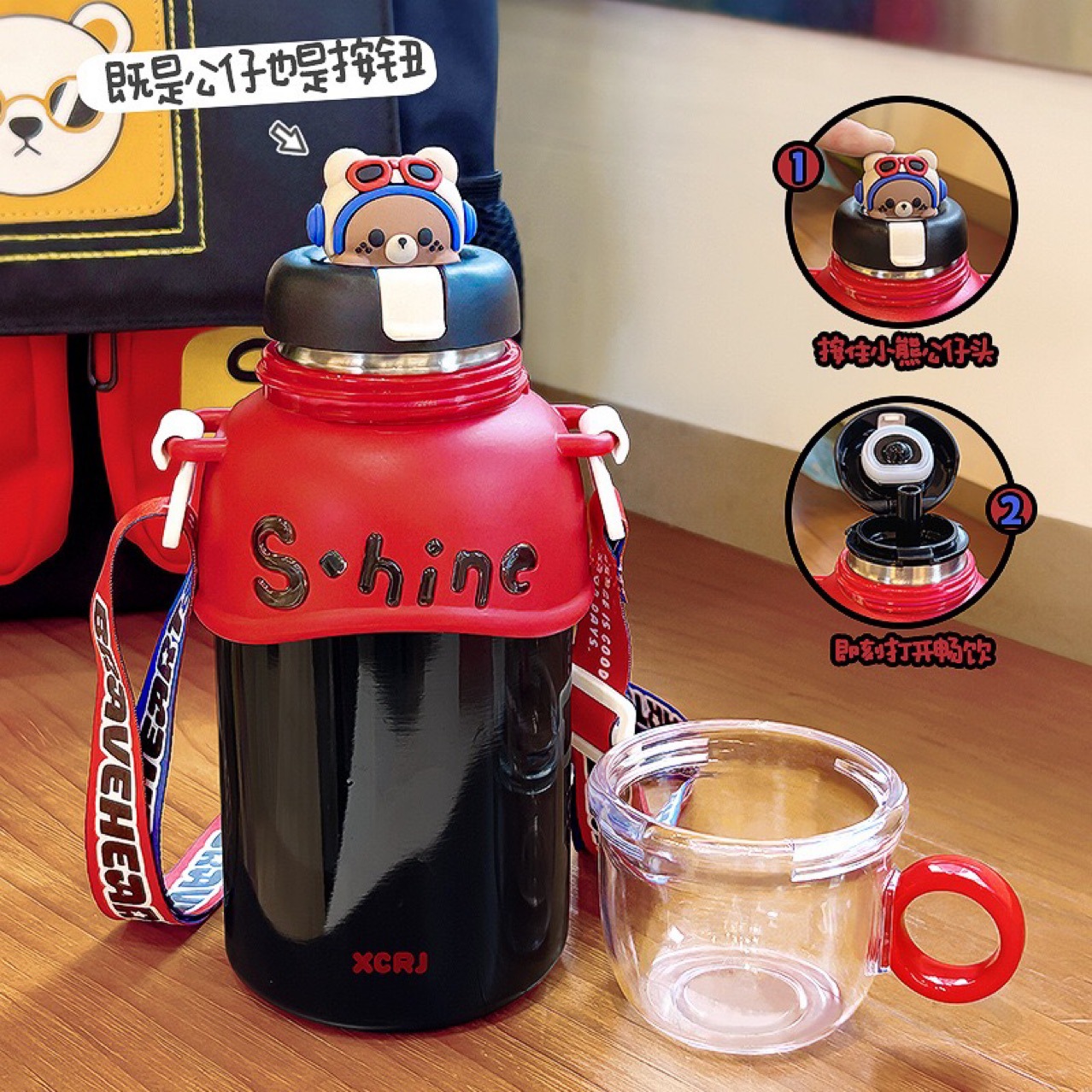 작은 차 일기 보온병 컵 어린이 여성의 낙하 방지 스테인레스 스틸 대용량 귀여운 만화 휴대용 컵 컵 로고