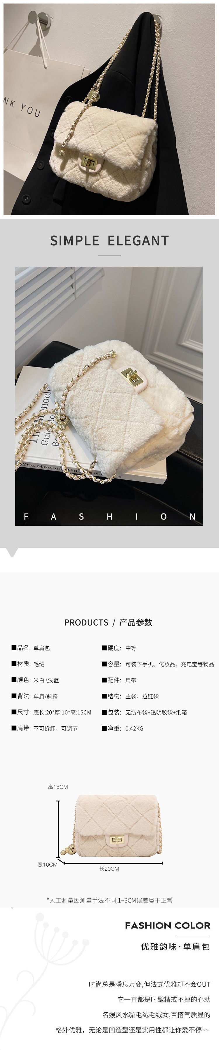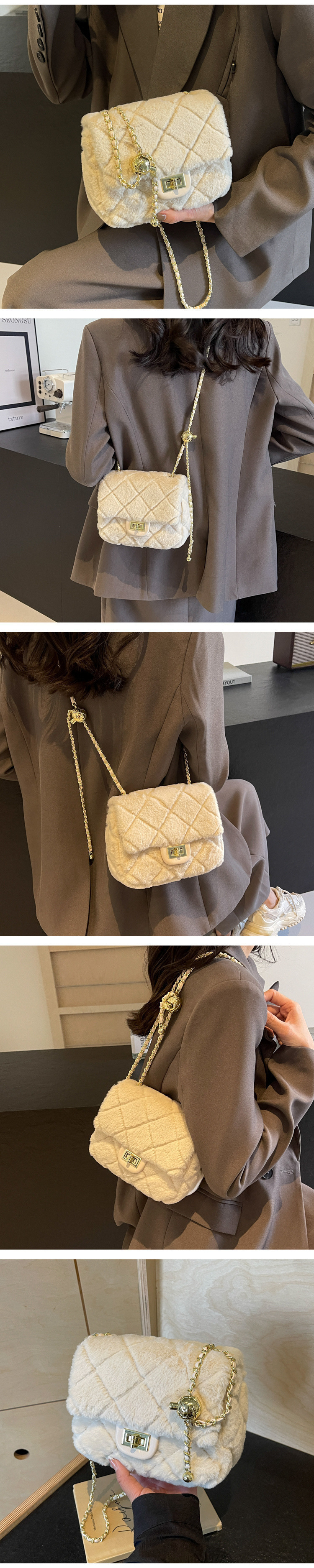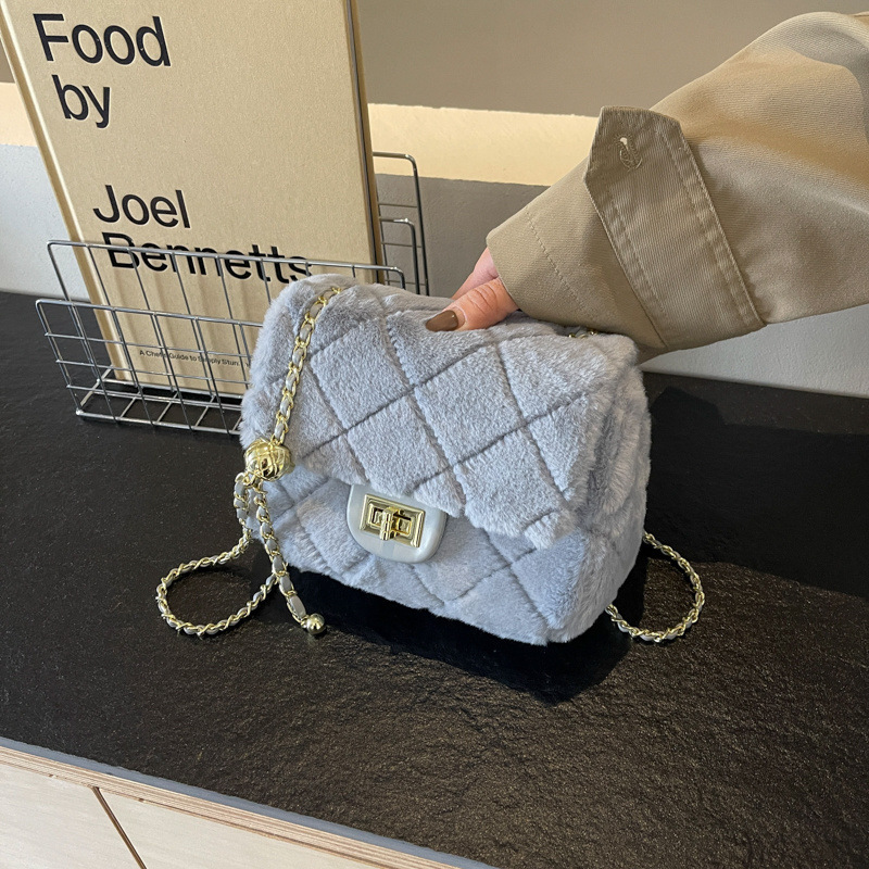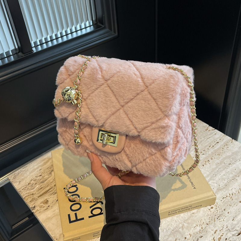 유명 스타일 밍크 봉제 여성 가방 2024 새로운 체인 스타일리스트 Rhomboid 어깨 크로스 바디 백 마오 마오 백