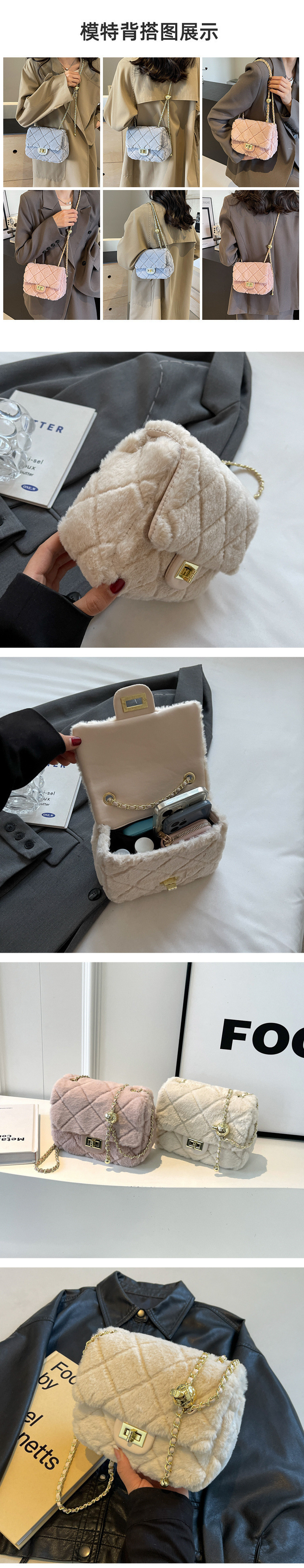 유명 스타일 밍크 봉제 여성 가방 2024 새로운 체인 스타일리스트 Rhomboid 어깨 크로스 바디 백 마오 마오 백스토어 가기