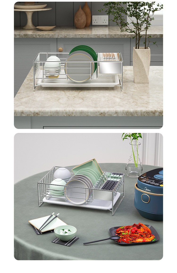 물 쟁반 요리 저장 랙을 가진 젓가락 케이지와 주방 스테인레스 스틸 조리대 배수 바구니 요리 보관 랙스토어 가기