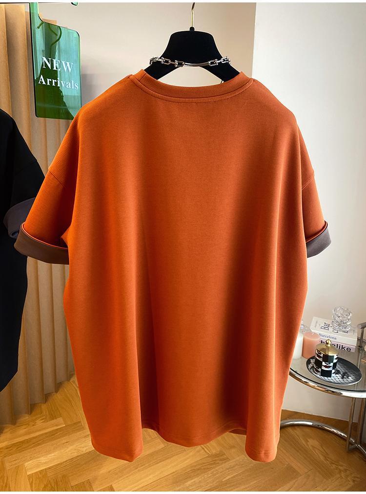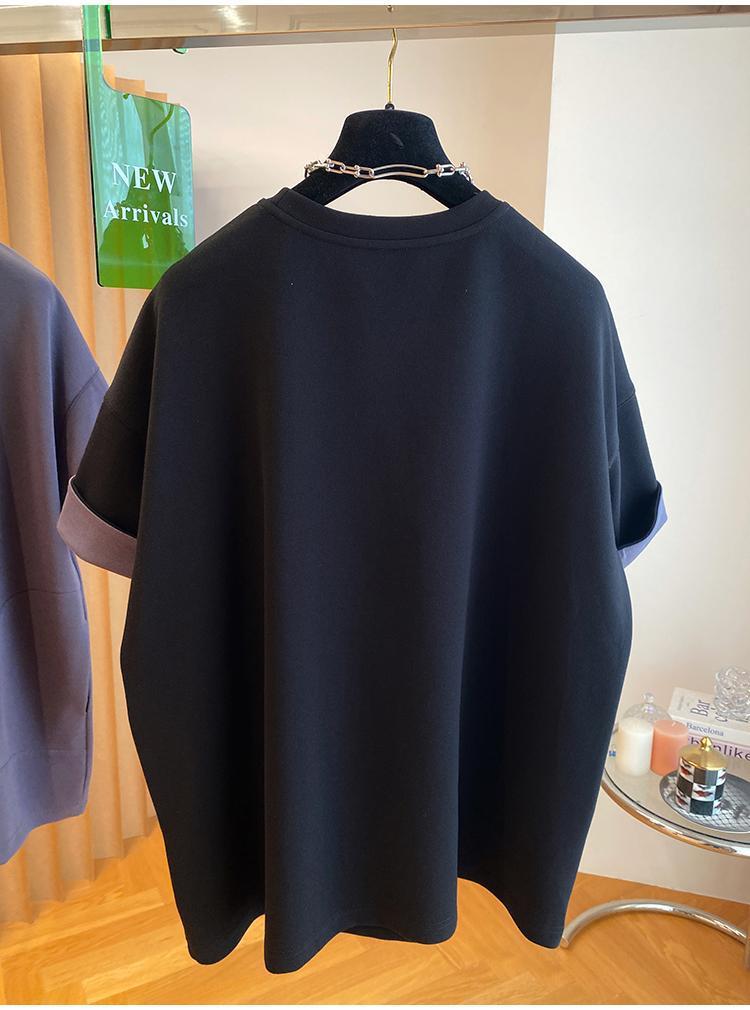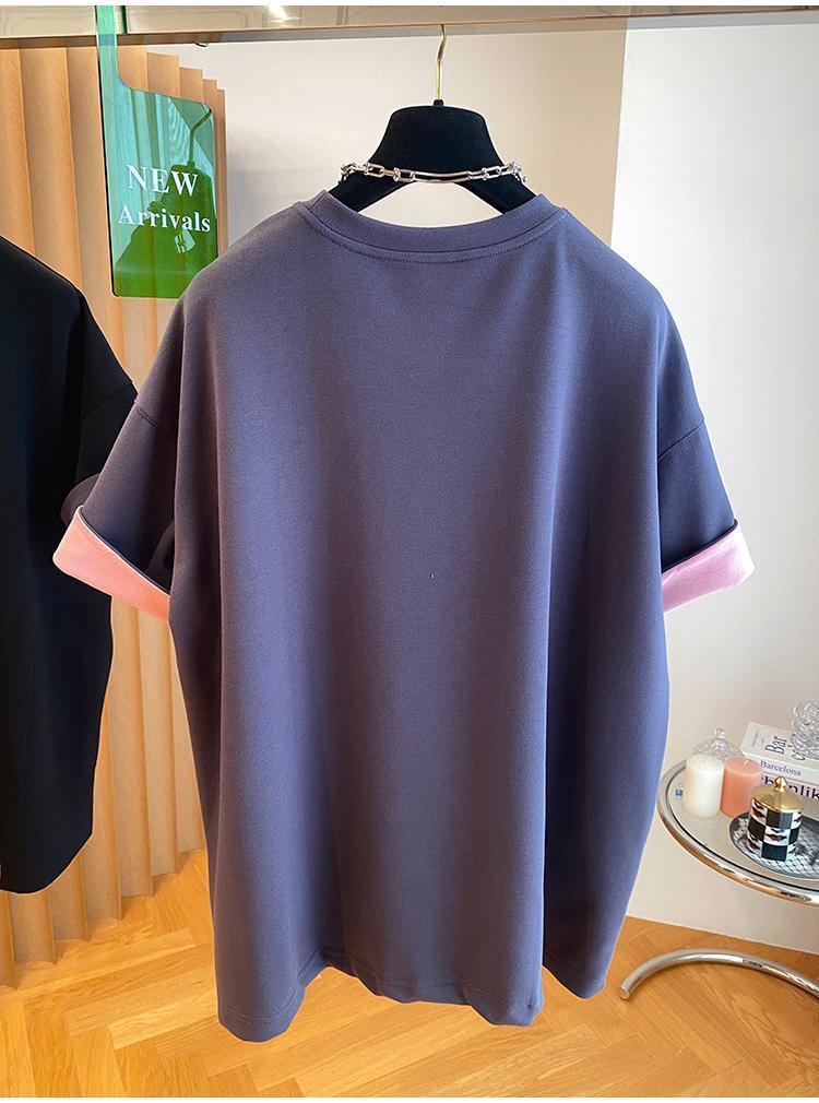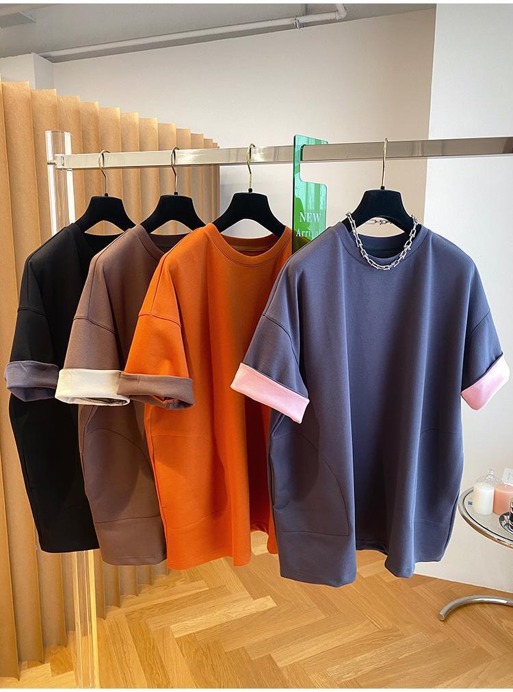 오버 사이즈 300 진 콘트라스트 커프 크루 넥 티셔츠 남성과 여성의 여름 새로운 루즈 조커 짧은 소매 티셔츠 재킷스토어 가기