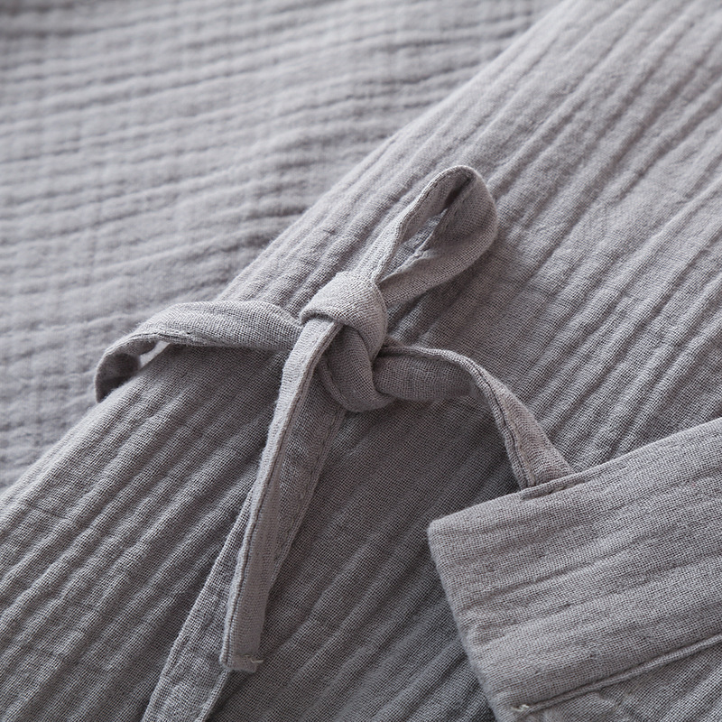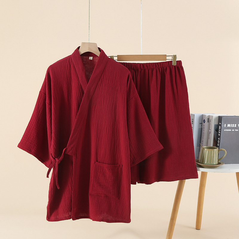 커플의 크레페 반팔 반바지 기모노 봄과 여름 얇은 암호화 플러스 사이즈 일본식 레이스 업 스웨트 남녀 홈 의류