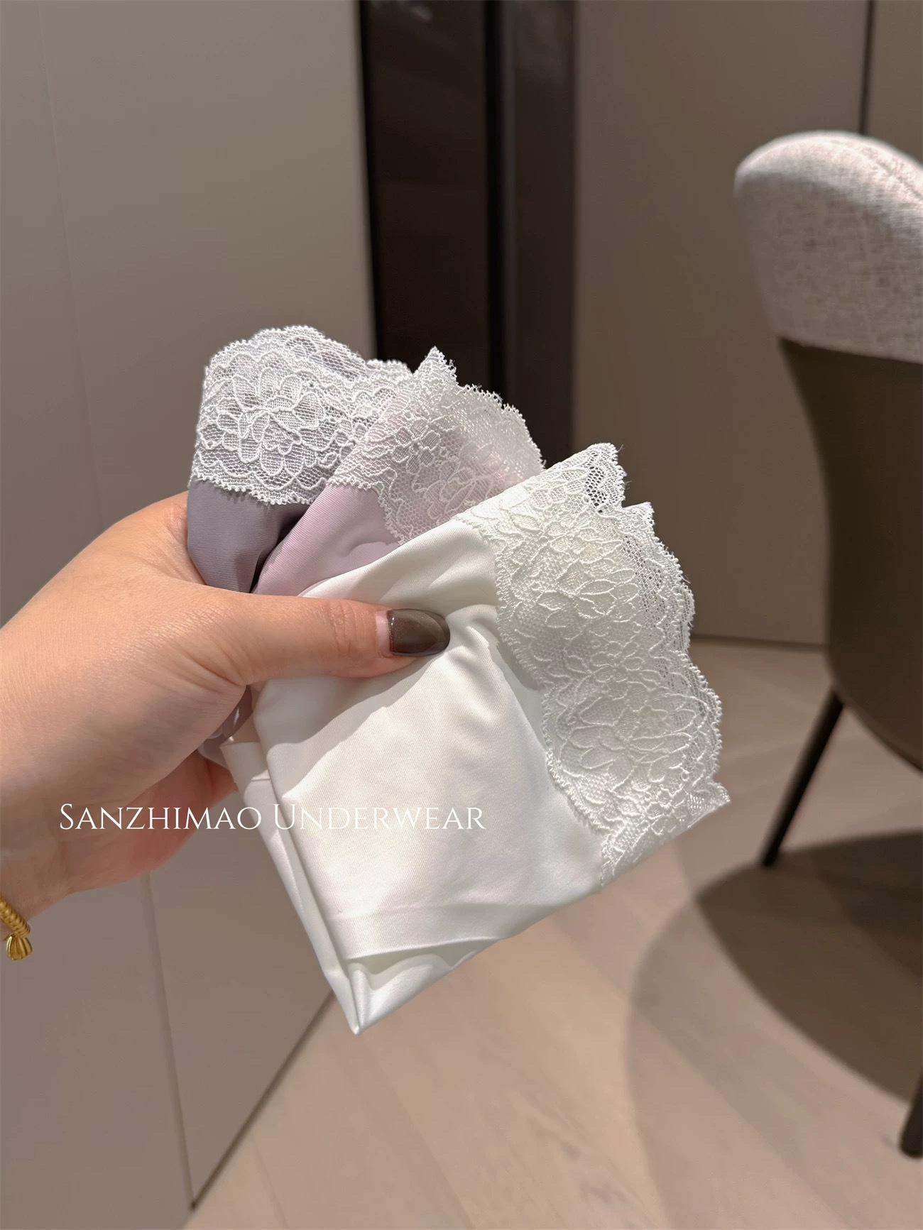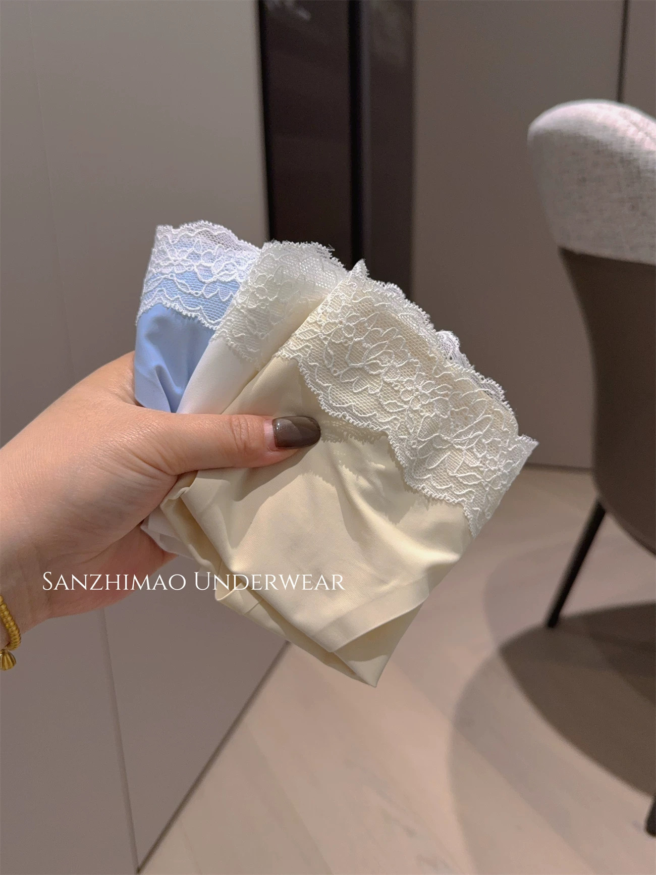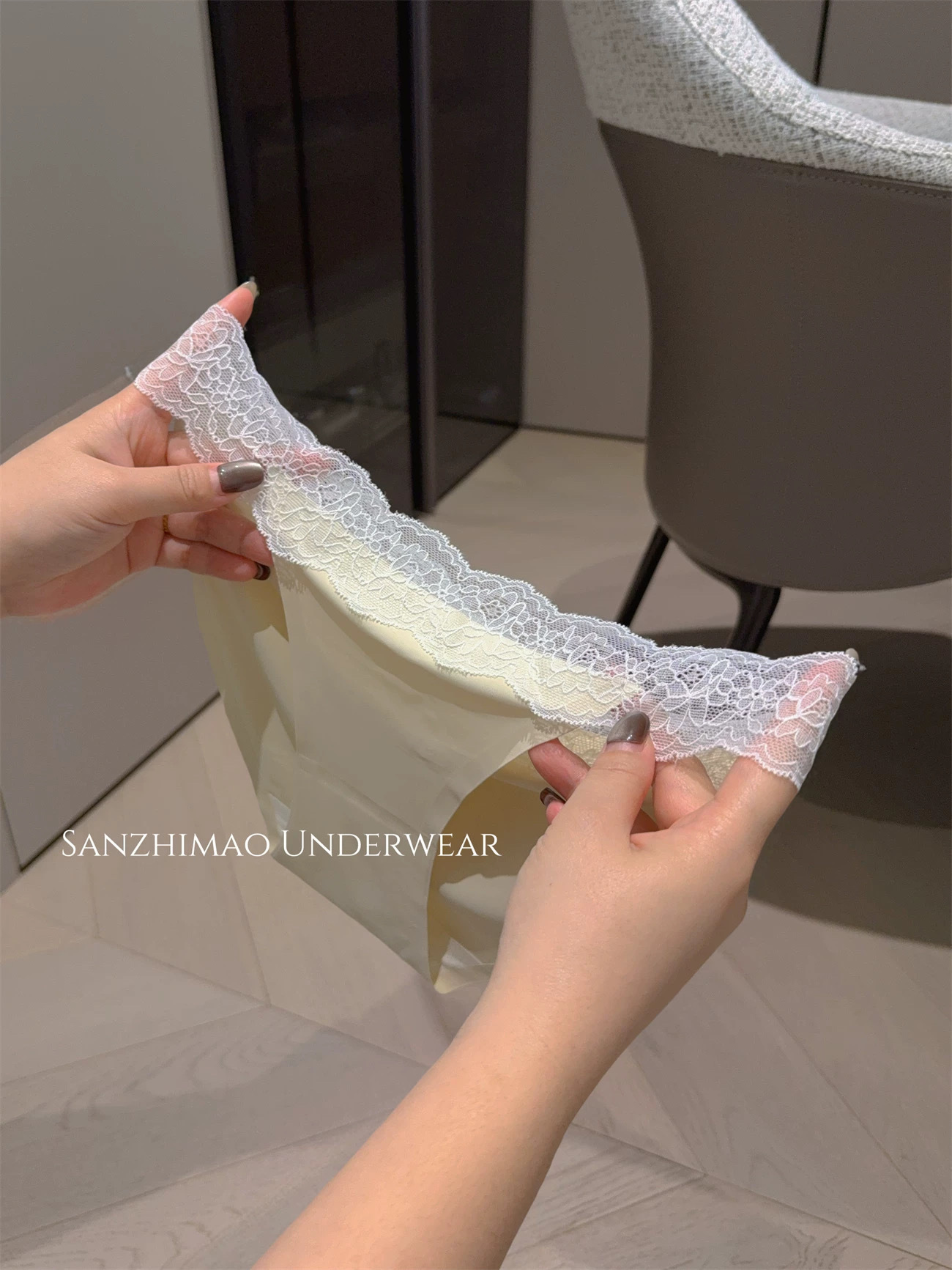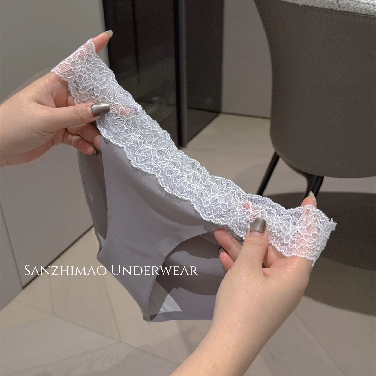 2025 새로운 소녀 추적없는 아이스 실크 얇은 섹시한 레이스 엣지 소녀 순수한 욕망 바람 속옷 여성 마스크 바지