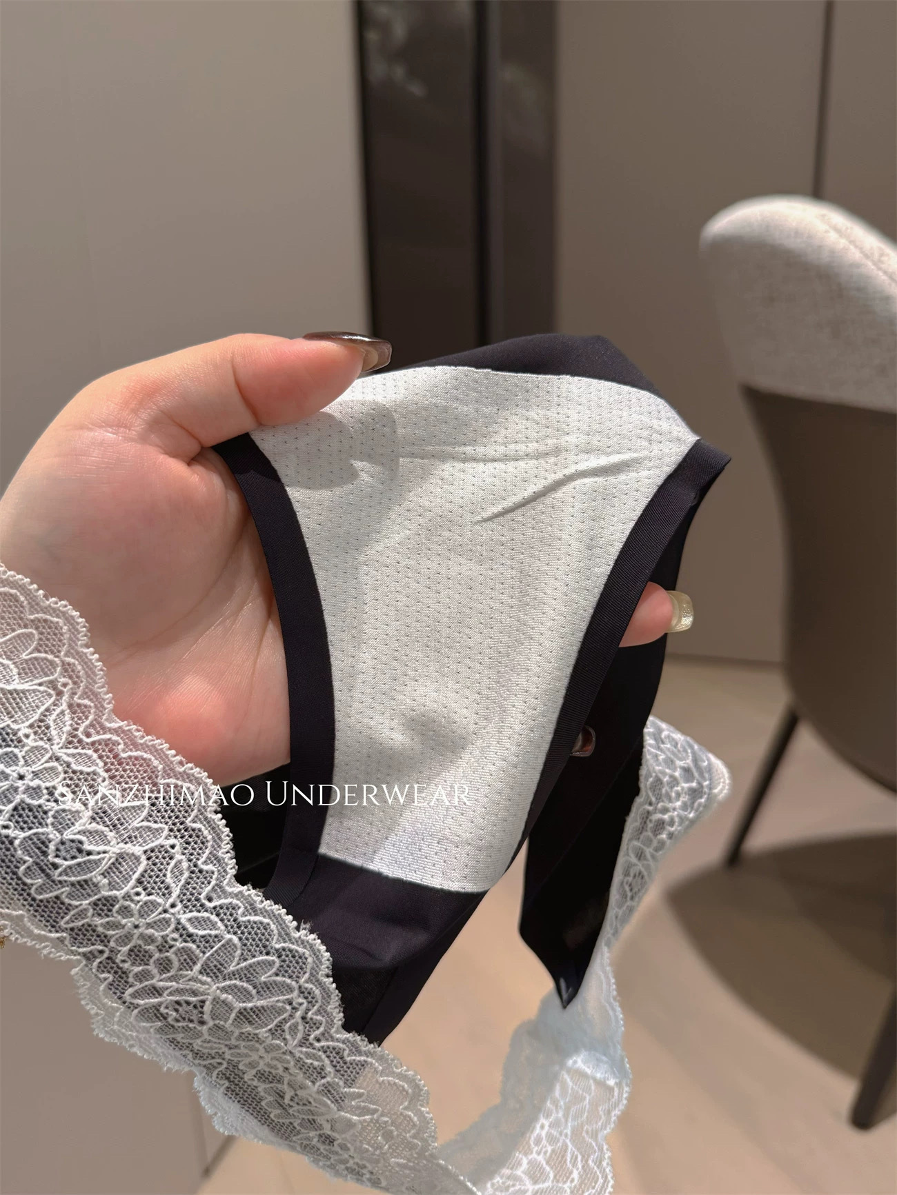 2025 새로운 소녀 추적없는 아이스 실크 얇은 섹시한 레이스 엣지 소녀 순수한 욕망 바람 속옷 여성 마스크 바지스토어 가기