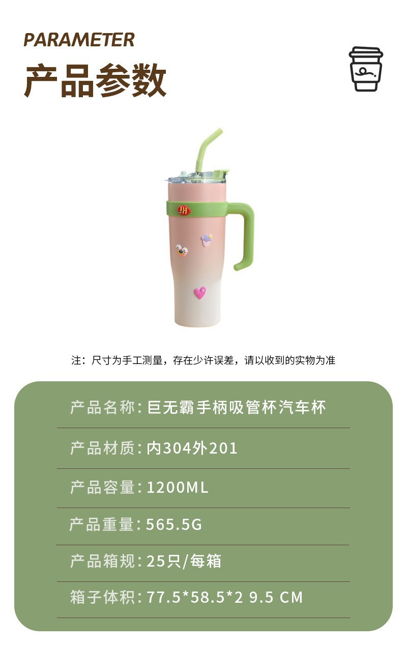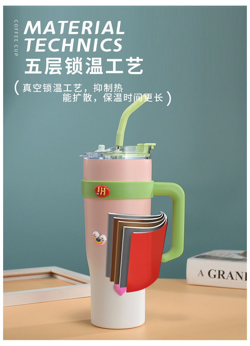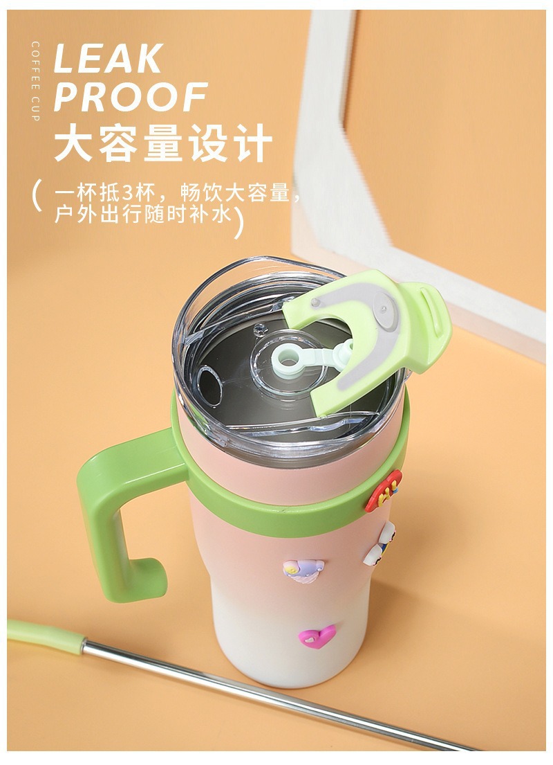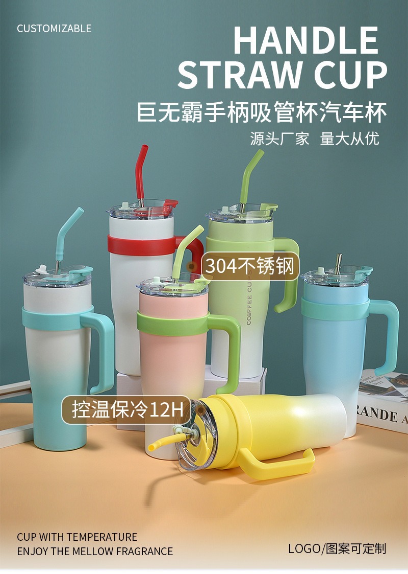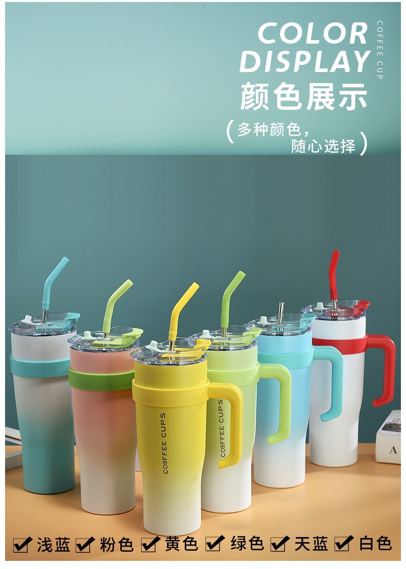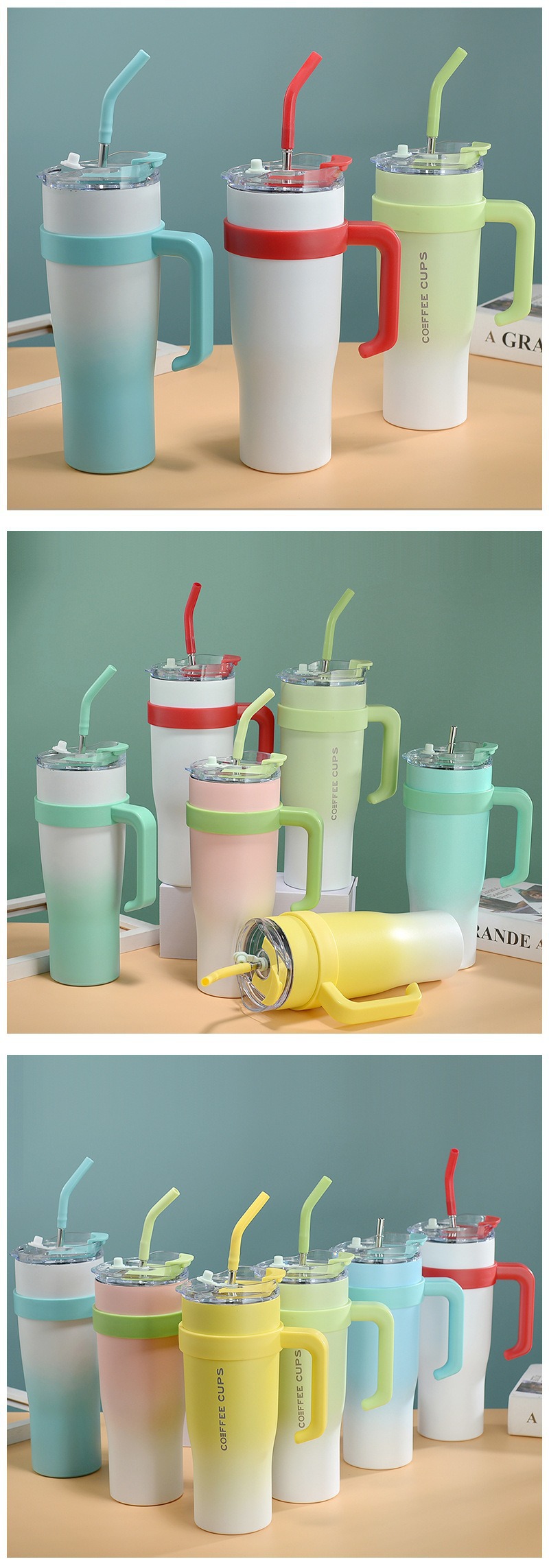 ✅높은 색상 가치 단열 차가운 빅 맥 아이스 컵 보온병 대용량 핸들 자동차 컵 304 스테인레스 스틸