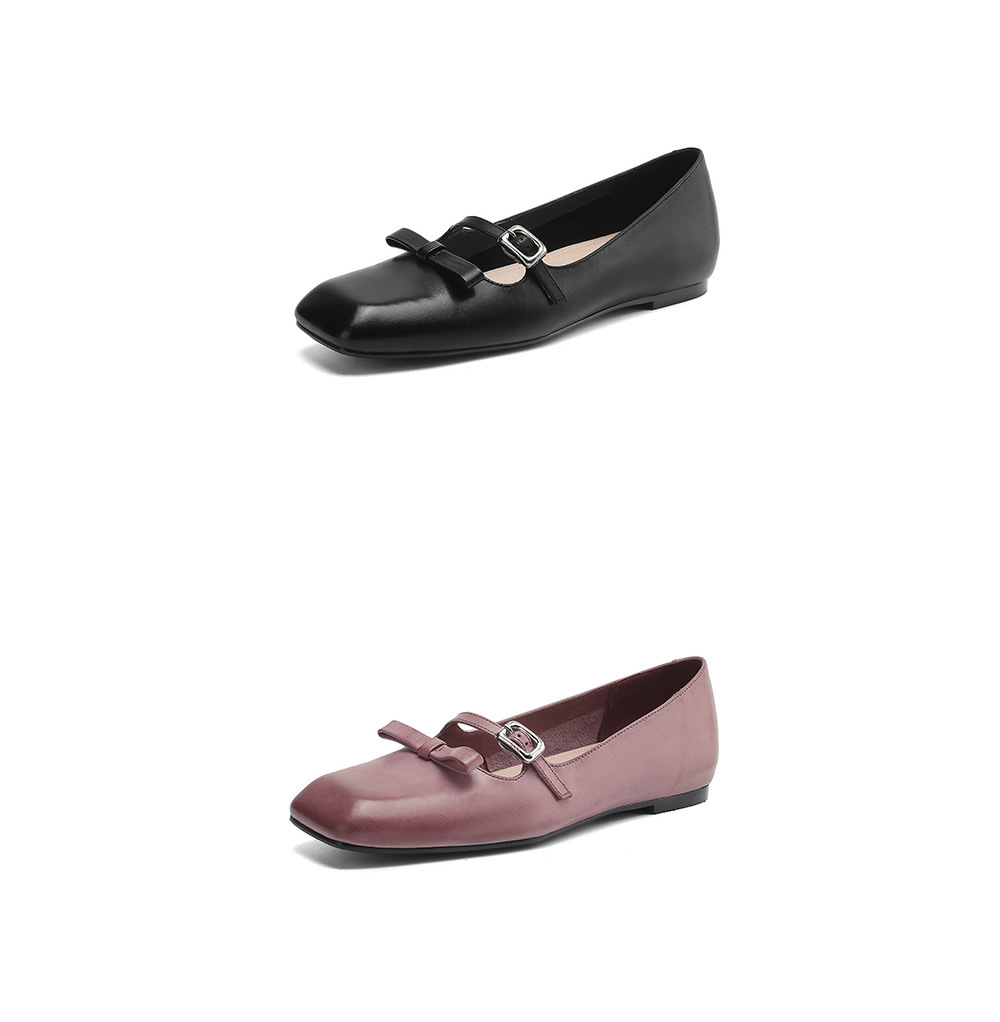 소 가죽 사각 머리의 첫 번째 레이어 메리 제인 신발 여성 2025 봄 새로운 얕은 평면 신발 활 단일 신발 도매