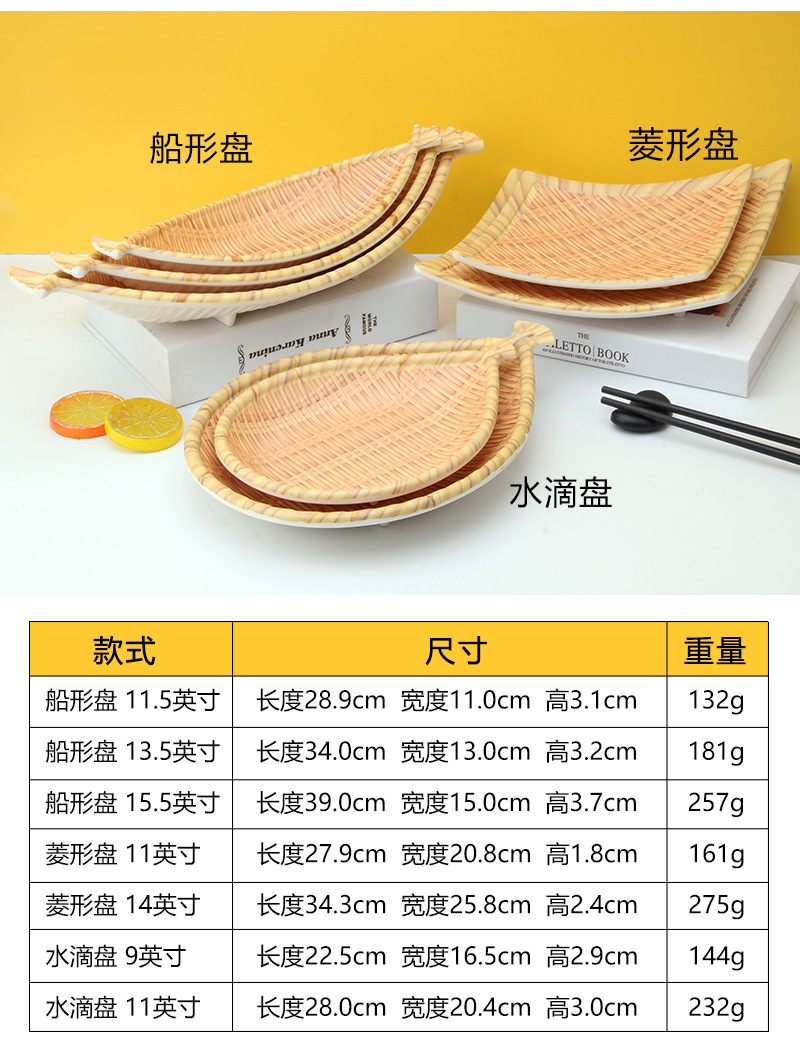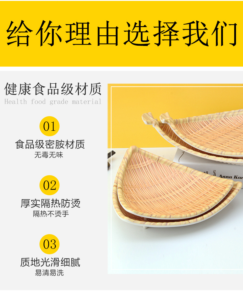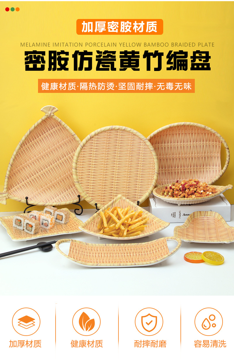 모조 대나무 접시 뜨거운 냄비 레스토랑 접시 모조 등나무 레스토랑 작은 과일 접시 레스토랑 상업 바베큐 모방 도자기 간판스토어 가기