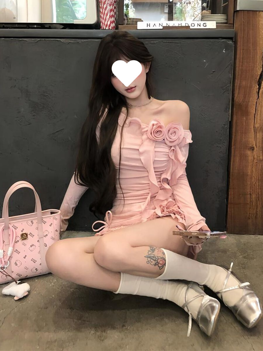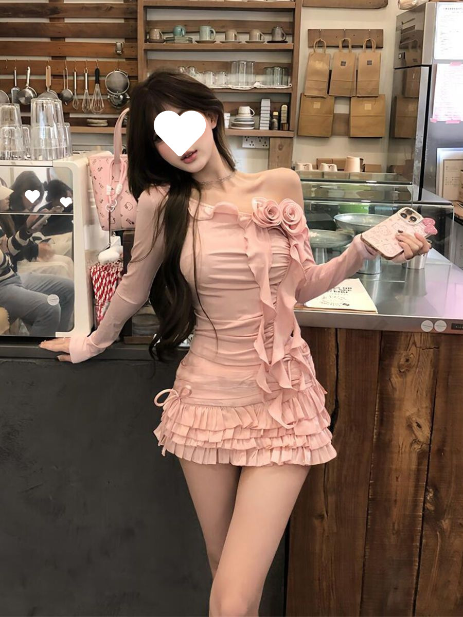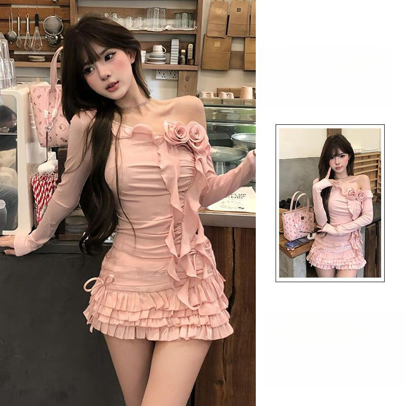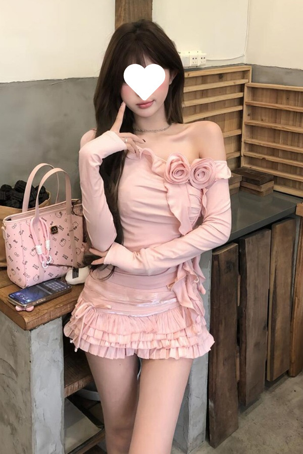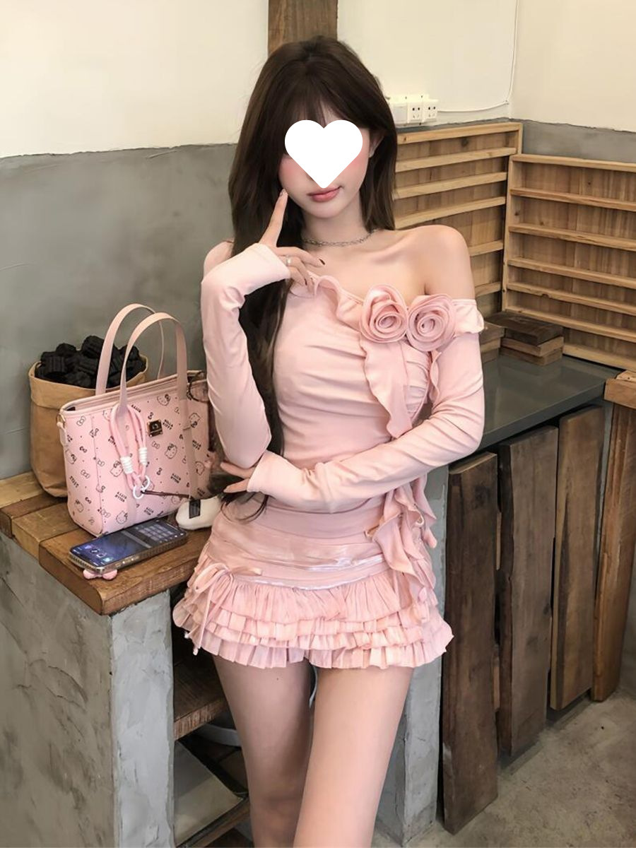 세트 여자 2025 년 여름 새로운 순수한 매운 어깨 슬림 핏 니트 탑 하이 웨이스트 슬리밍 주름 치마스토어 가기