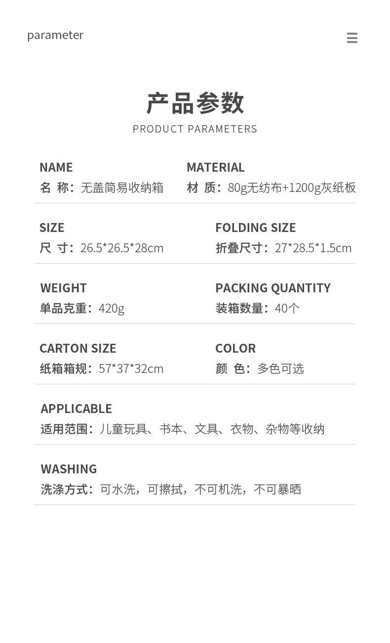 저장 상자 접이식 옷 부직포 저장 상자 적합 상자 가정용 제품 장난감 직물 저장 상자 흰색스토어 가기