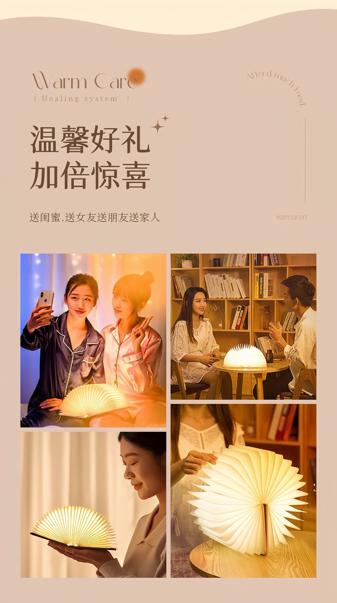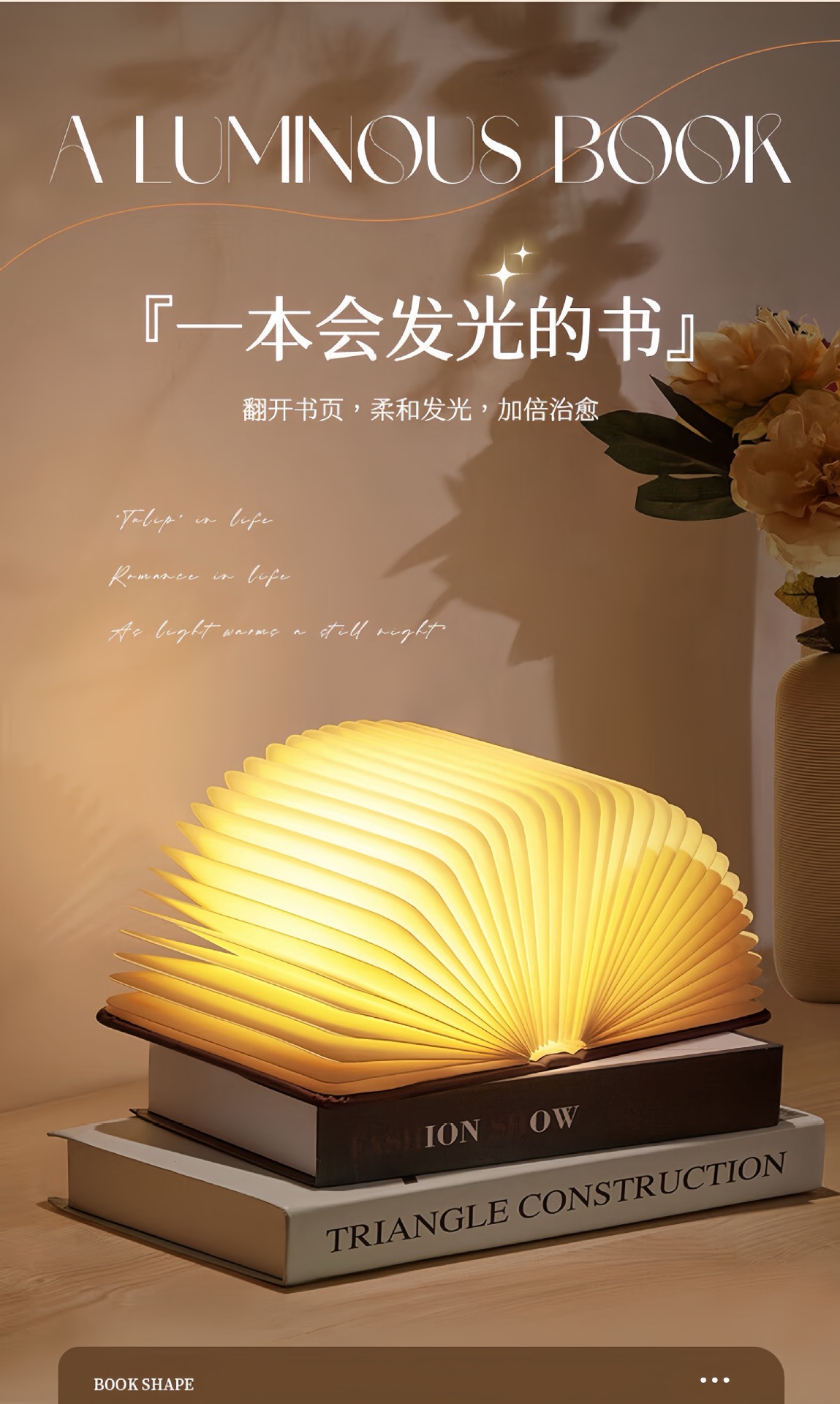 재고 있음 발광 가죽 자석 북라이트 창의적인 선물 접이식 충전식 책 페이지 넘김 분위기 조명 야간등스토어 가기