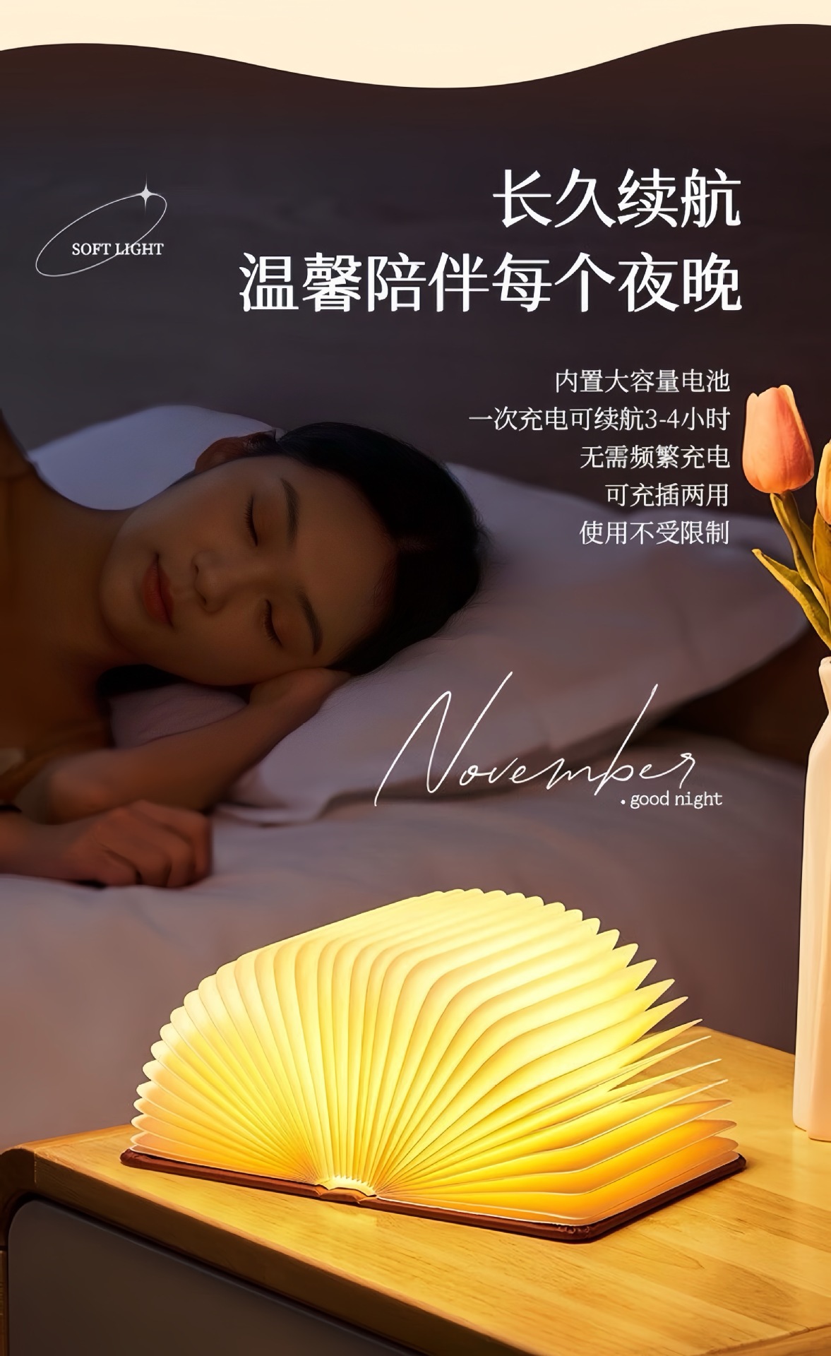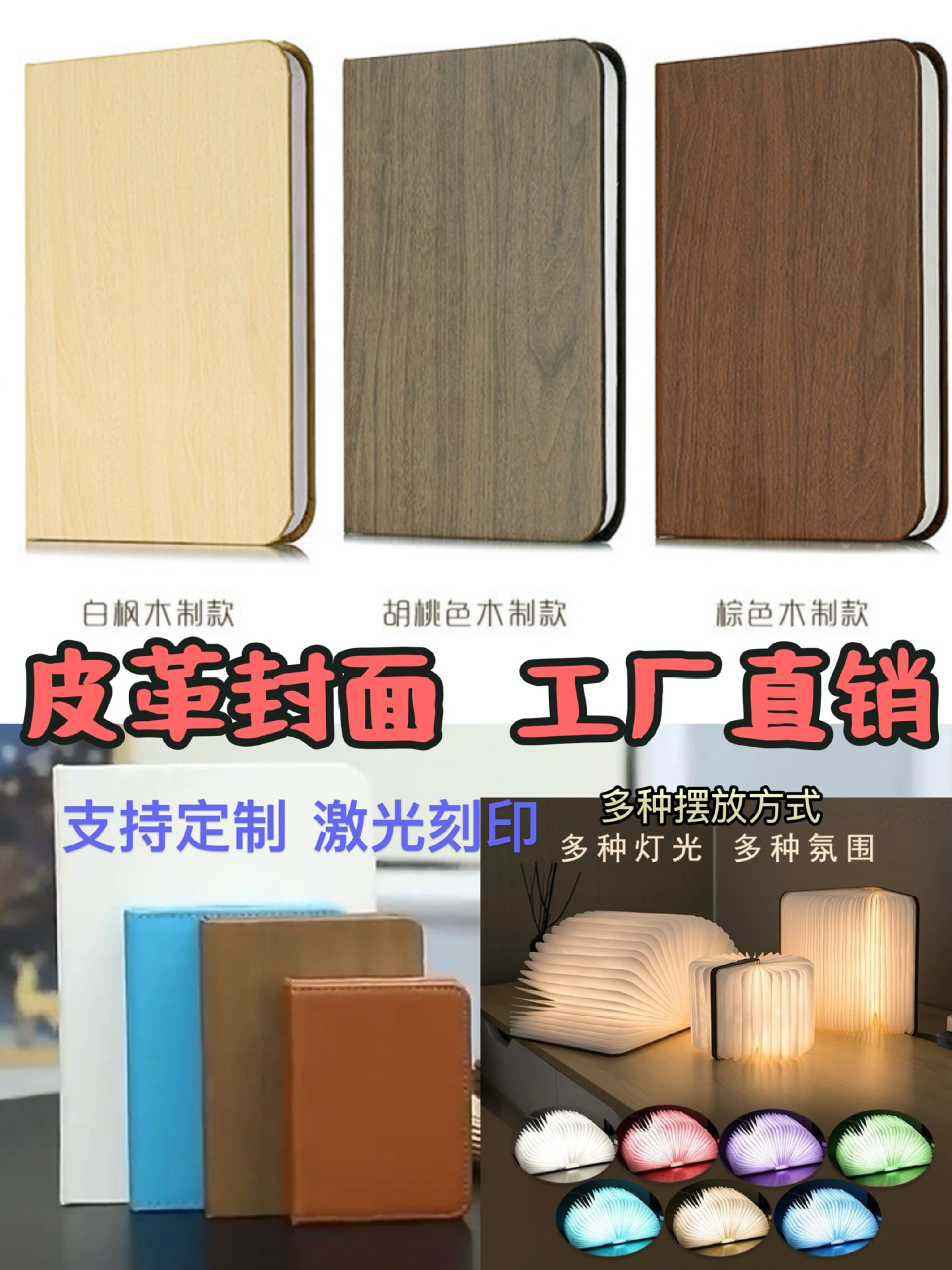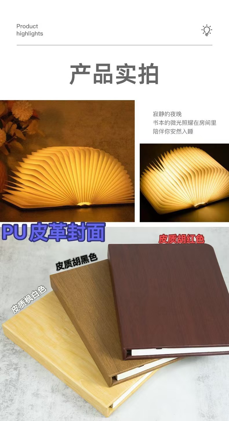 재고 있음 발광 가죽 자석 북라이트 창의적인 선물 접이식 충전식 책 페이지 넘김 분위기 조명 야간등