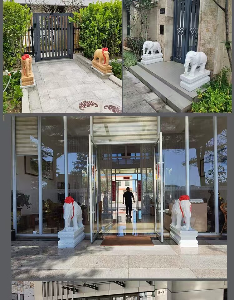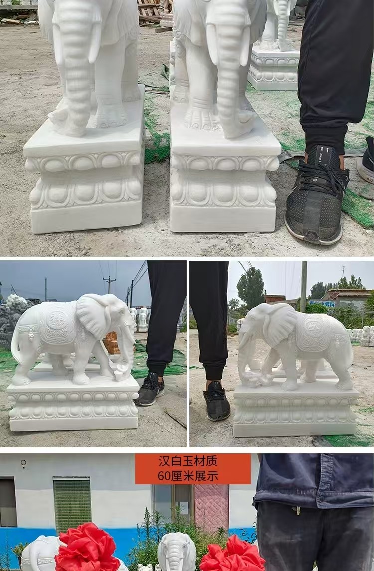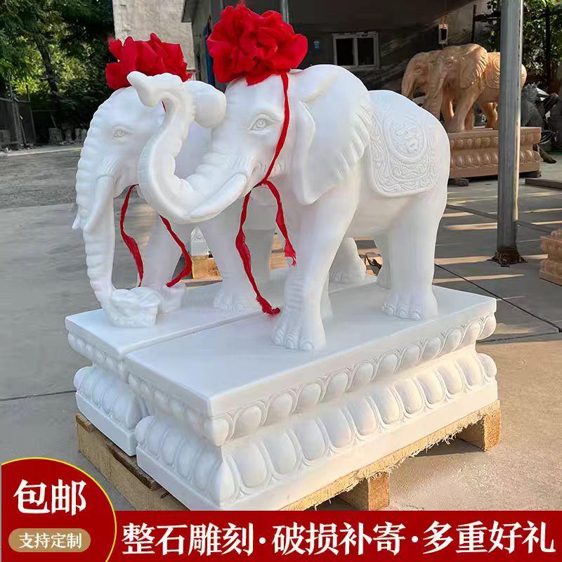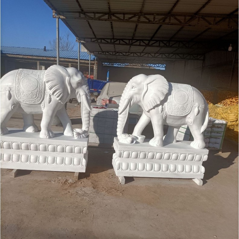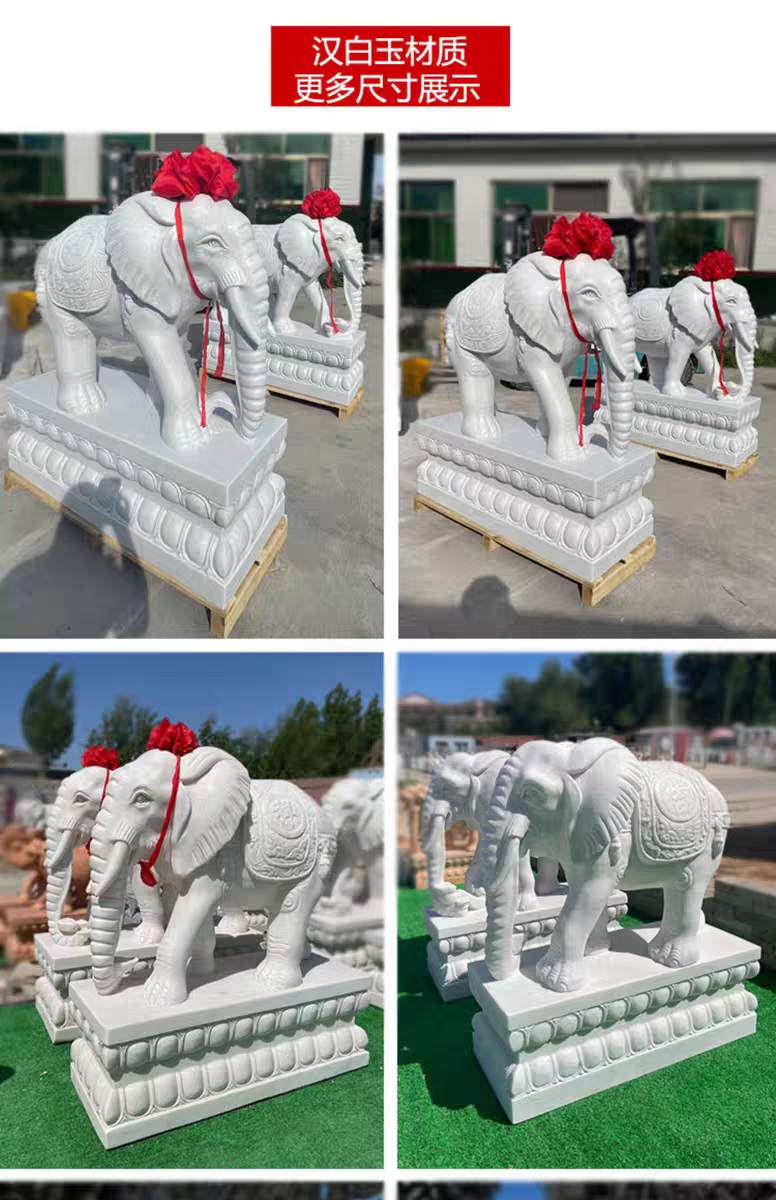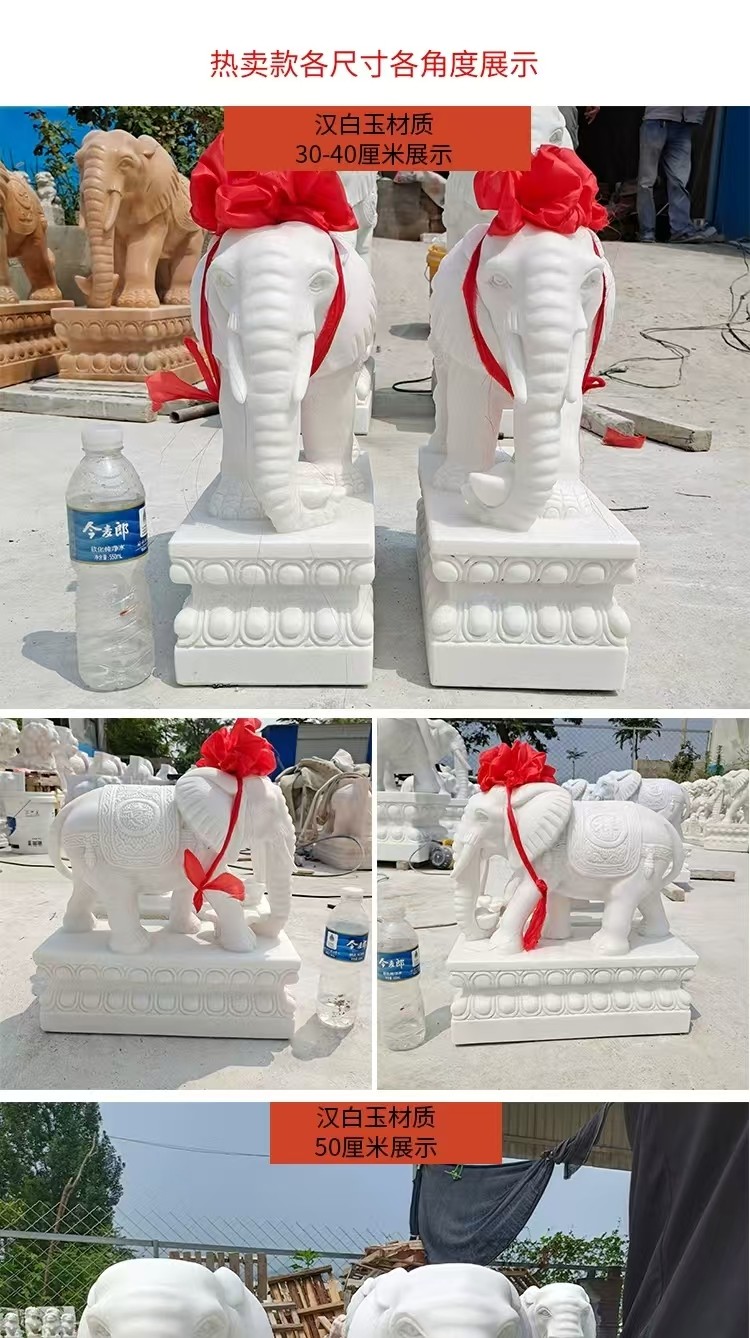 돌 조각 코끼리 한 쌍의 흰색 대리석 블루 스톤 코끼리 빌라 안뜰 문 행운의 물 흡수 코끼리 마을 장식품스토어 가기