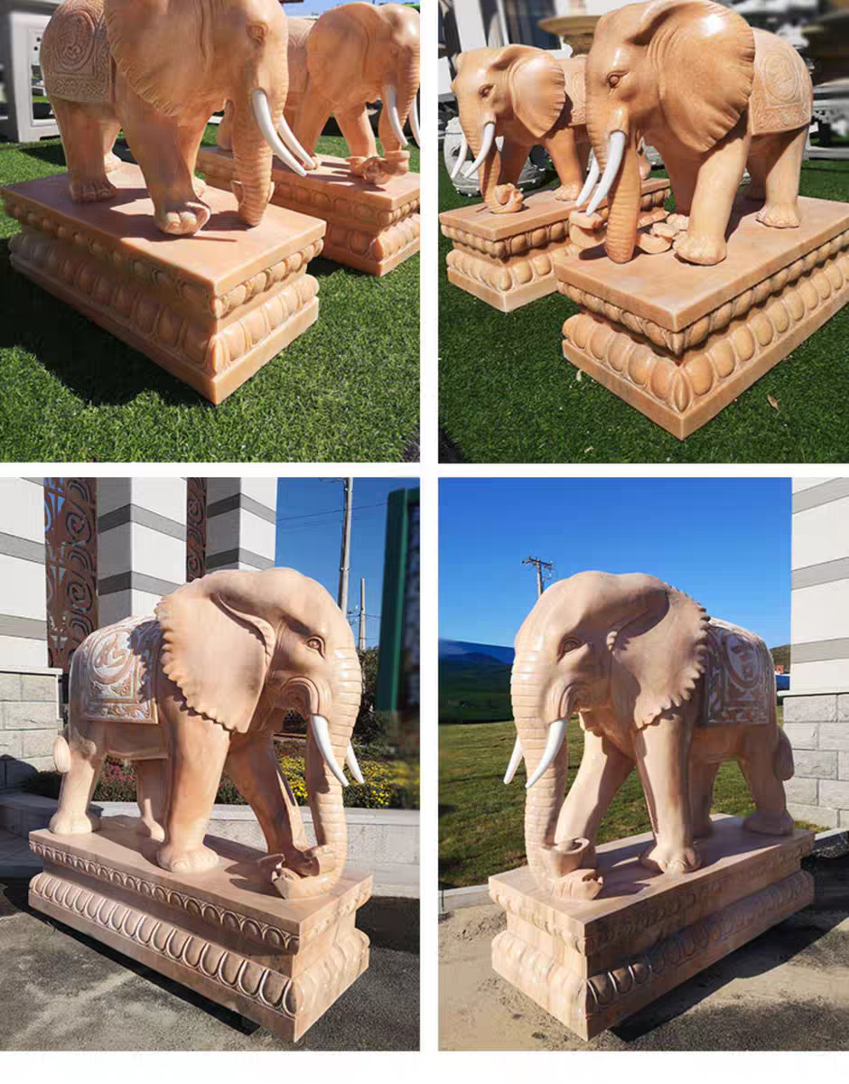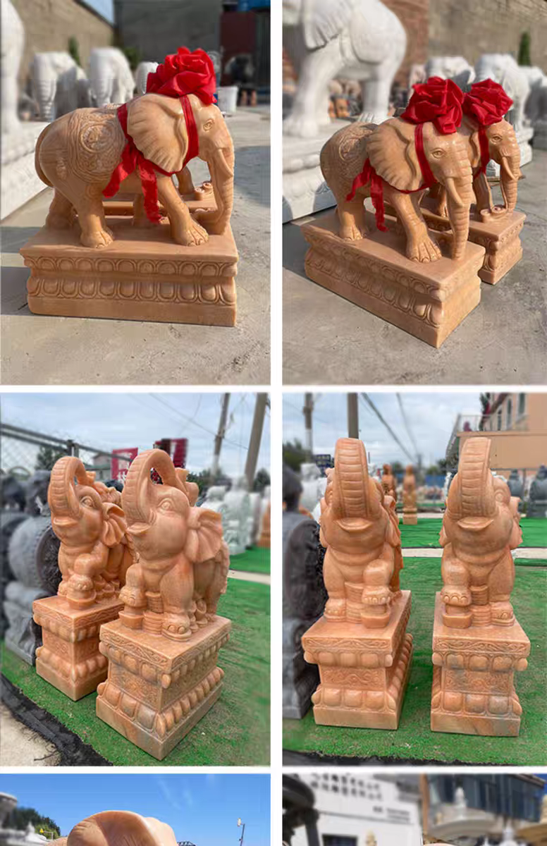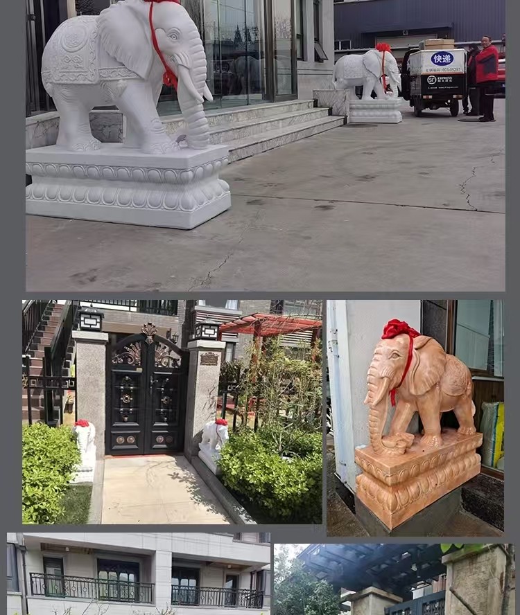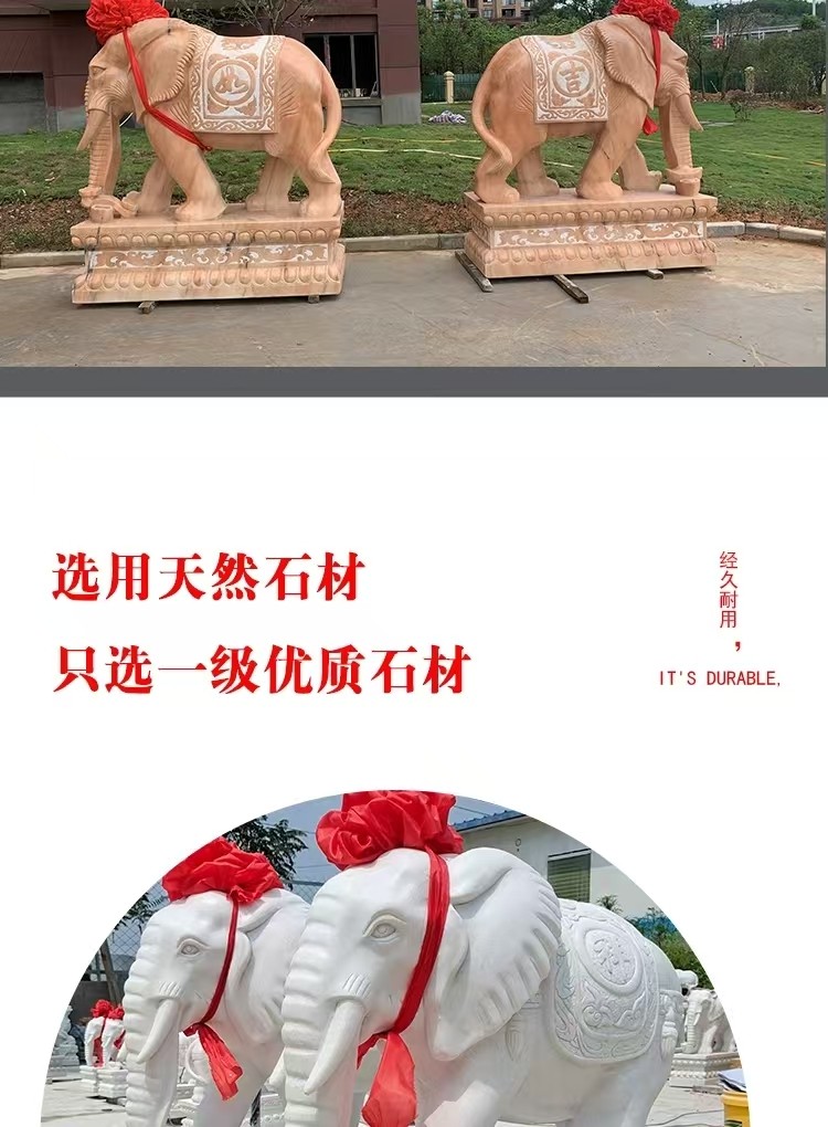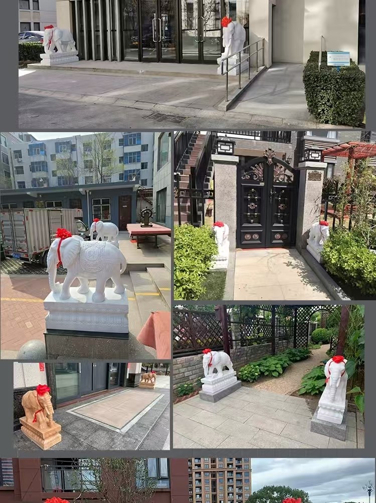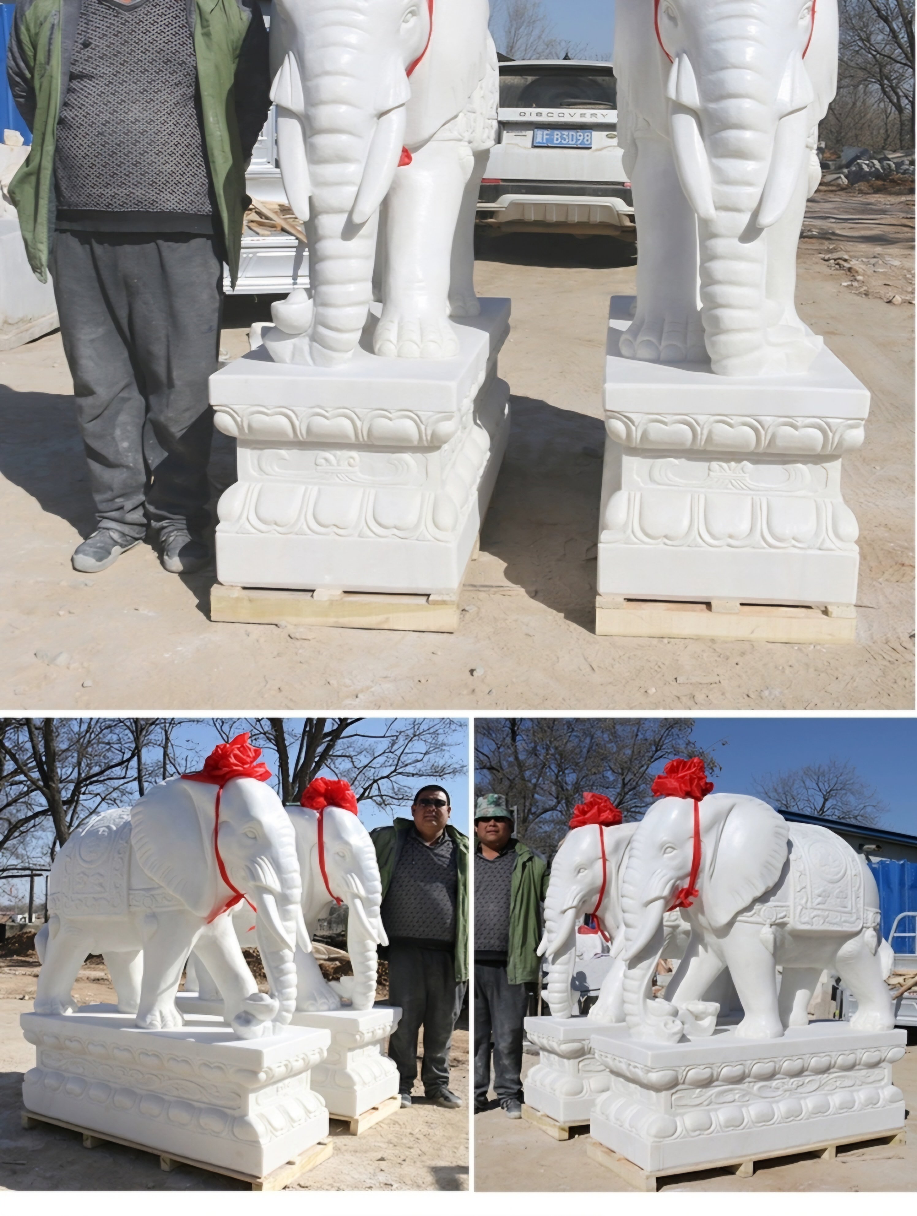 돌 조각 코끼리 한 쌍의 흰색 대리석 블루 스톤 코끼리 빌라 안뜰 문 행운의 물 흡수 코끼리 마을 장식품스토어 가기
