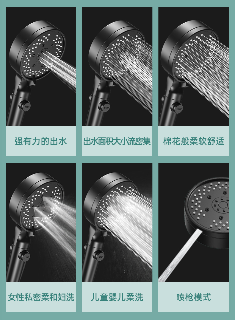 • 6단 강력 슈퍼차저 샤워기 + 호스 2m개 블랙