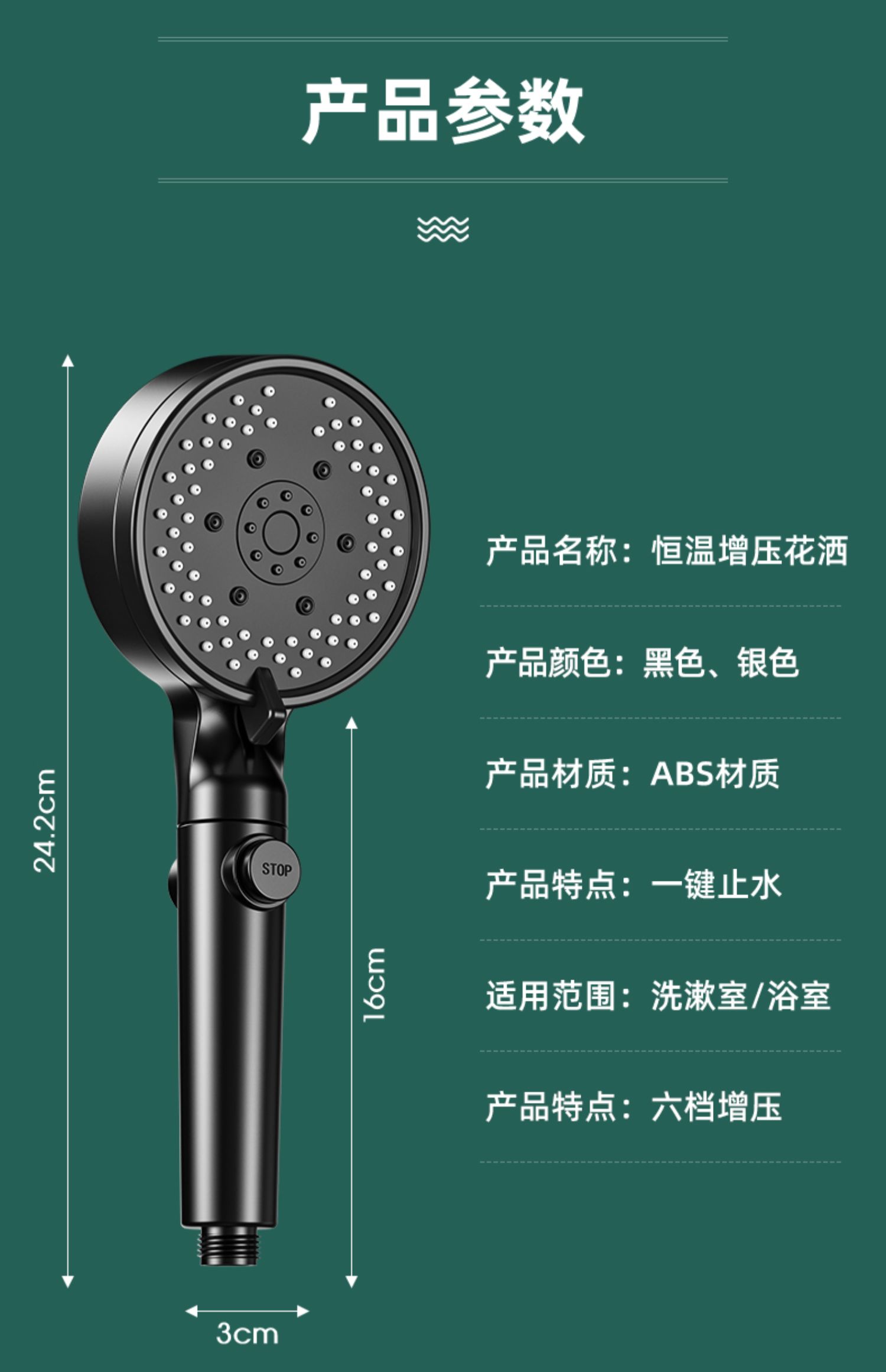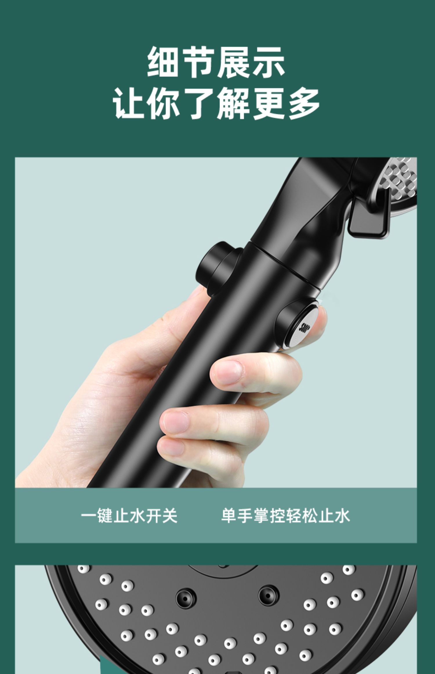• 6단 강력 슈퍼차저 샤워기 + 호스 1.5m개 블랙