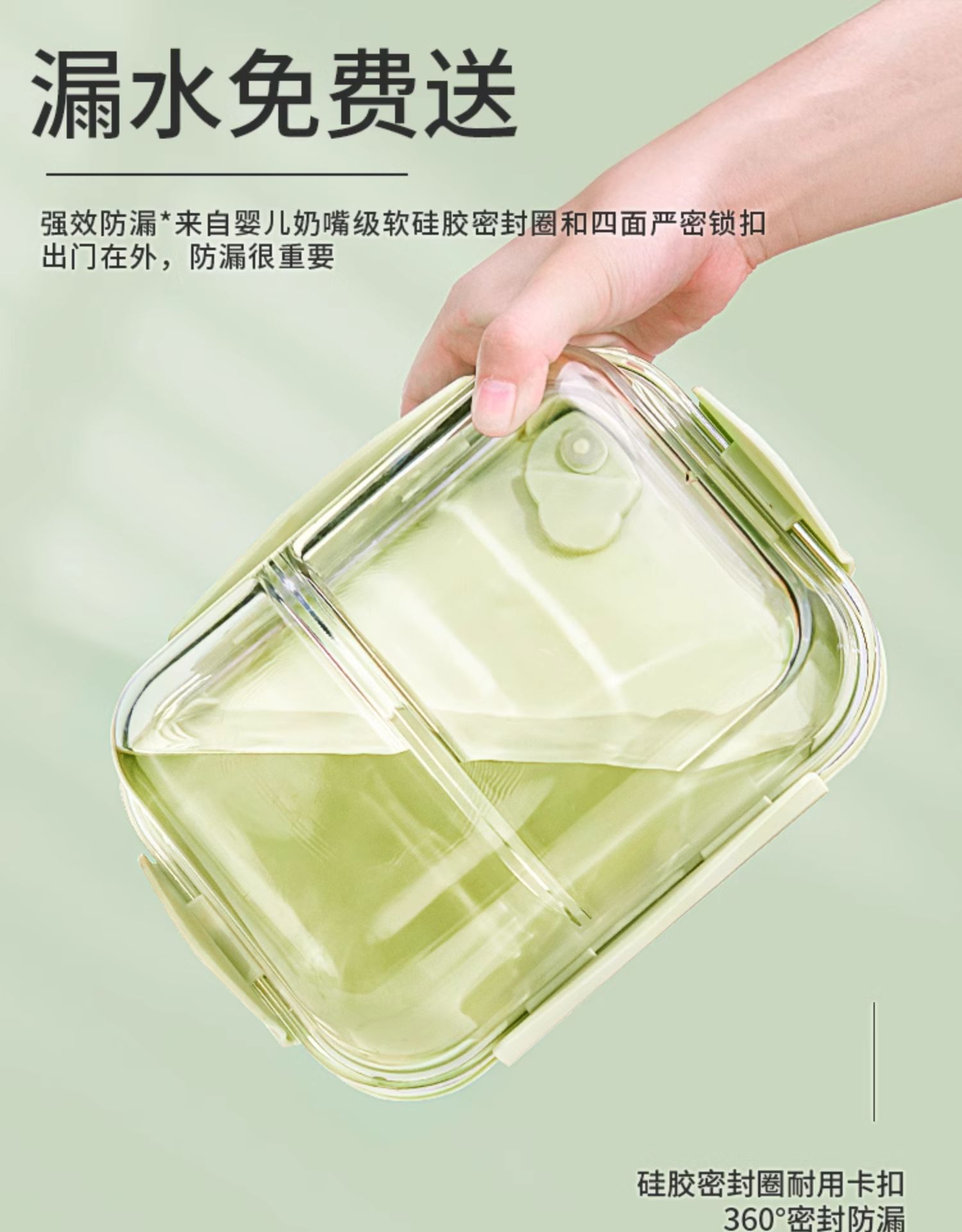 • 민트그린-대형 3칸 1050ml [무료 식기세트]☆☆