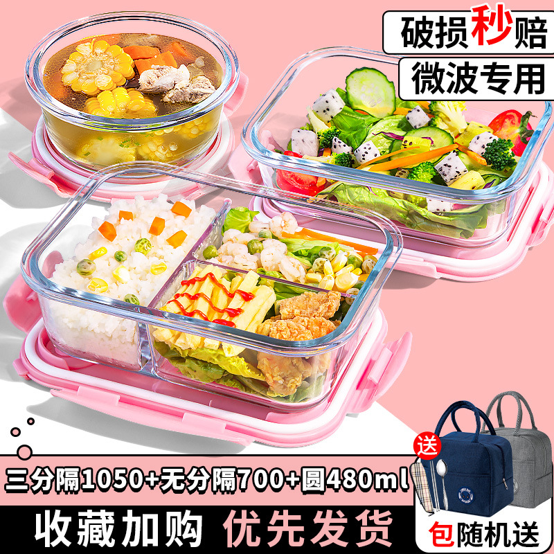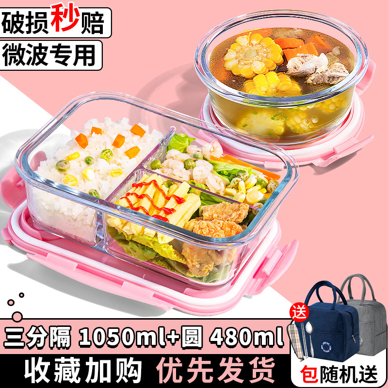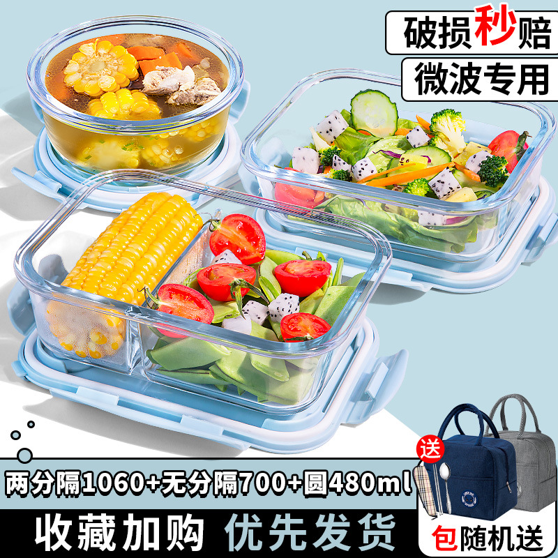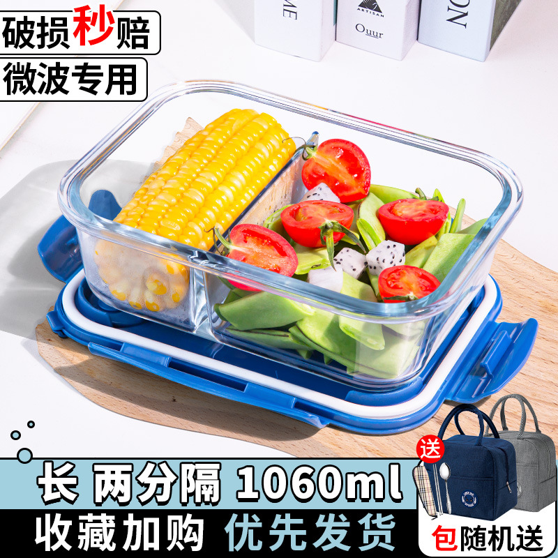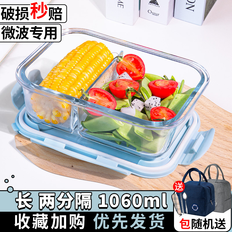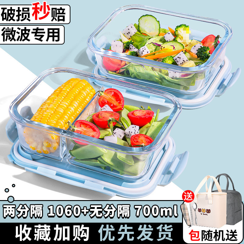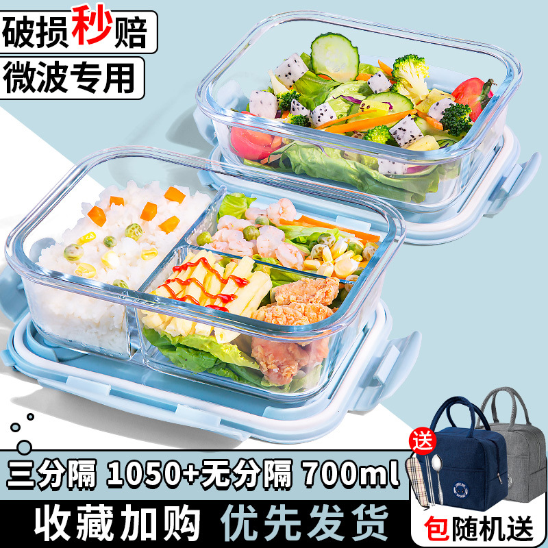 유리 도시락은 전자 레인지로 가열 할 수 있습니다. 사무원을위한 특수 그릇 바이한 Zhe를 분리하기 위해 식사 상자가있는 격리 도시락 상자스토어 가기