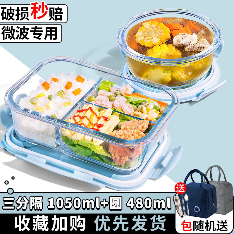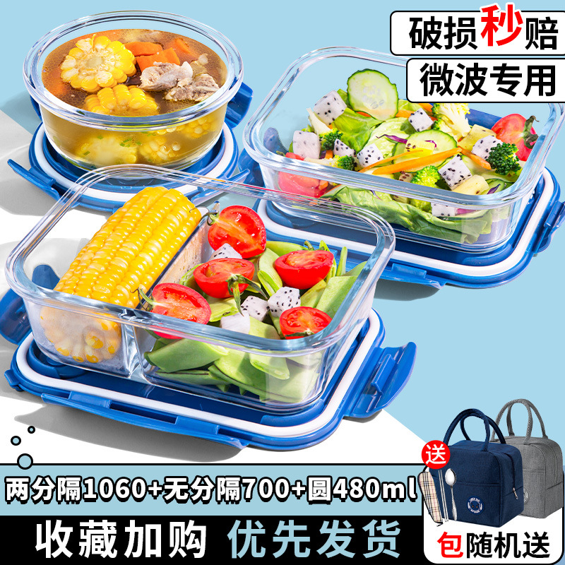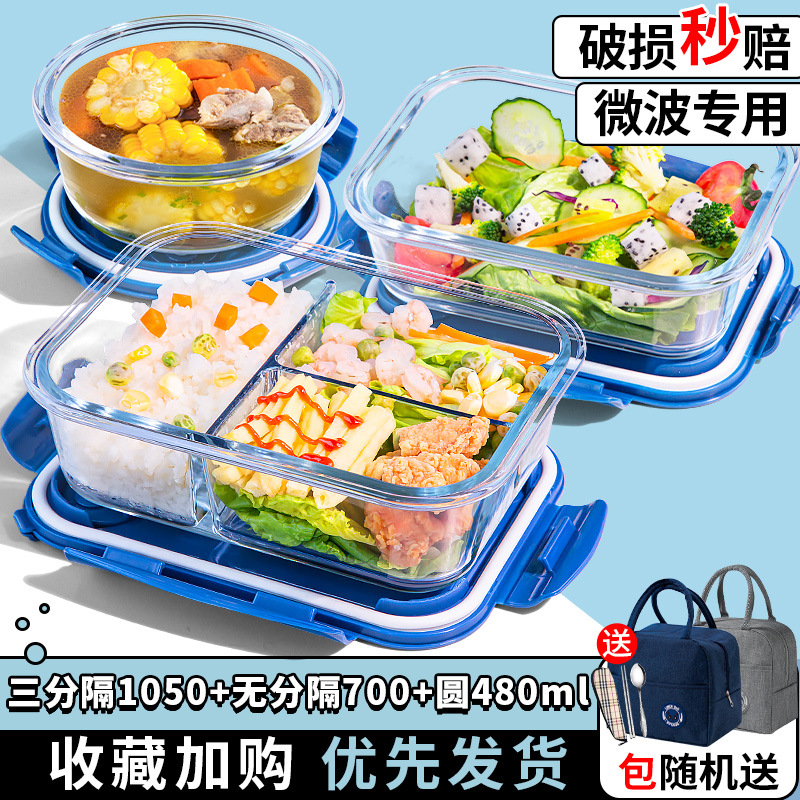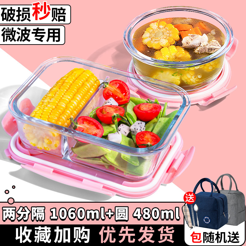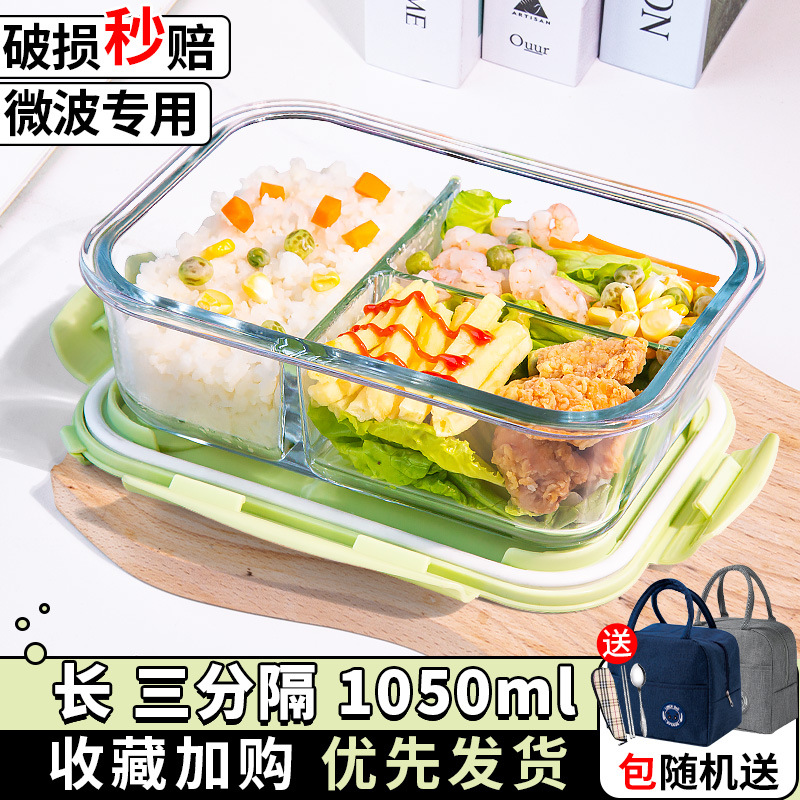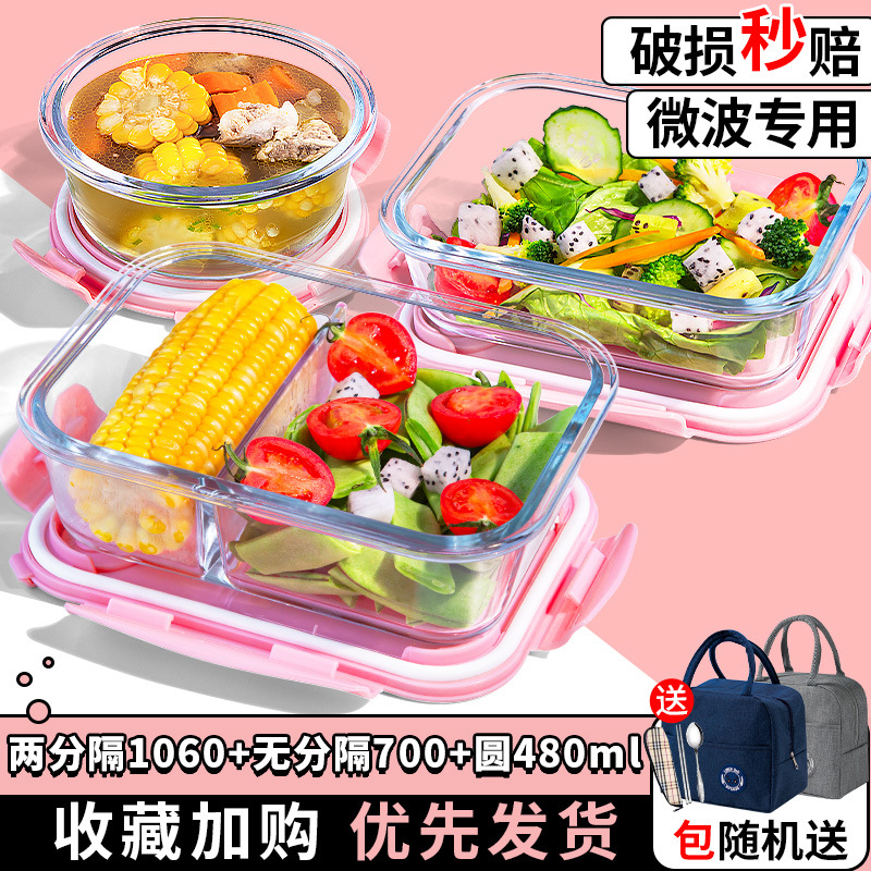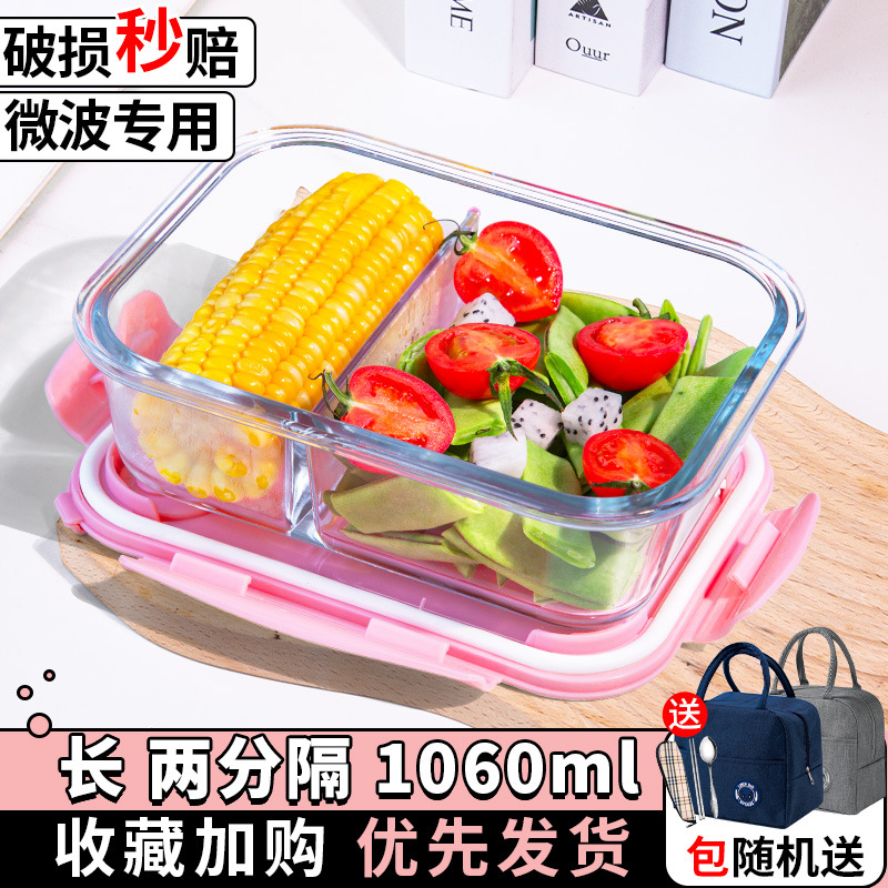 유리 도시락은 전자 레인지로 가열 할 수 있습니다. 사무원을위한 특수 그릇 바이한 Zhe를 분리하기 위해 식사 상자가있는 격리 도시락 상자스토어 가기