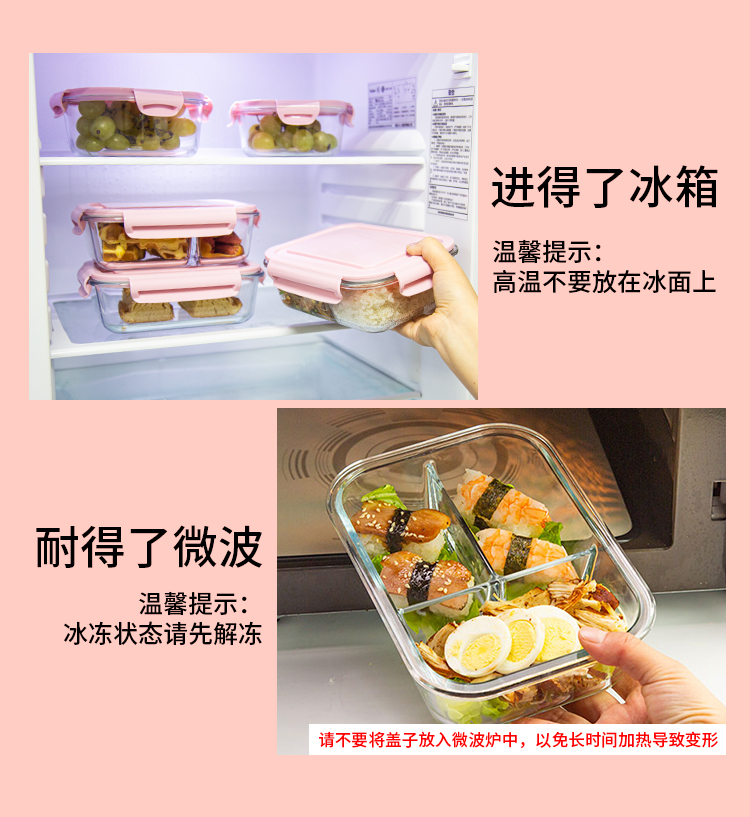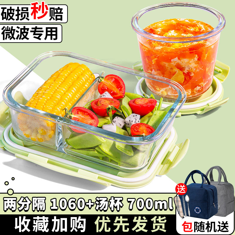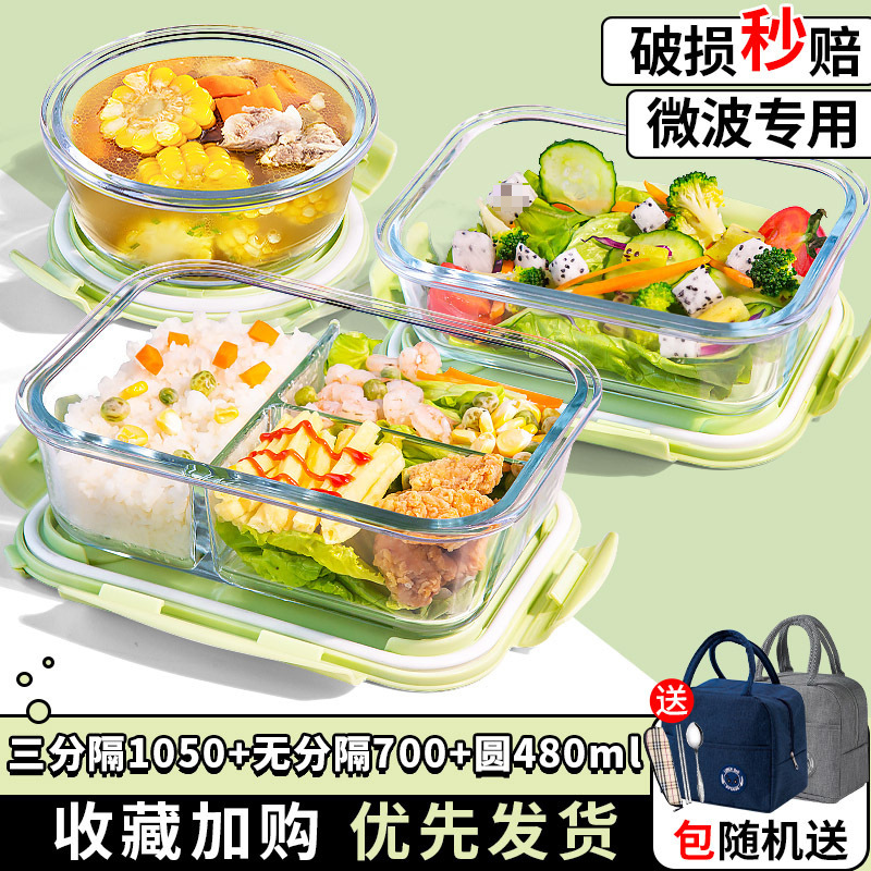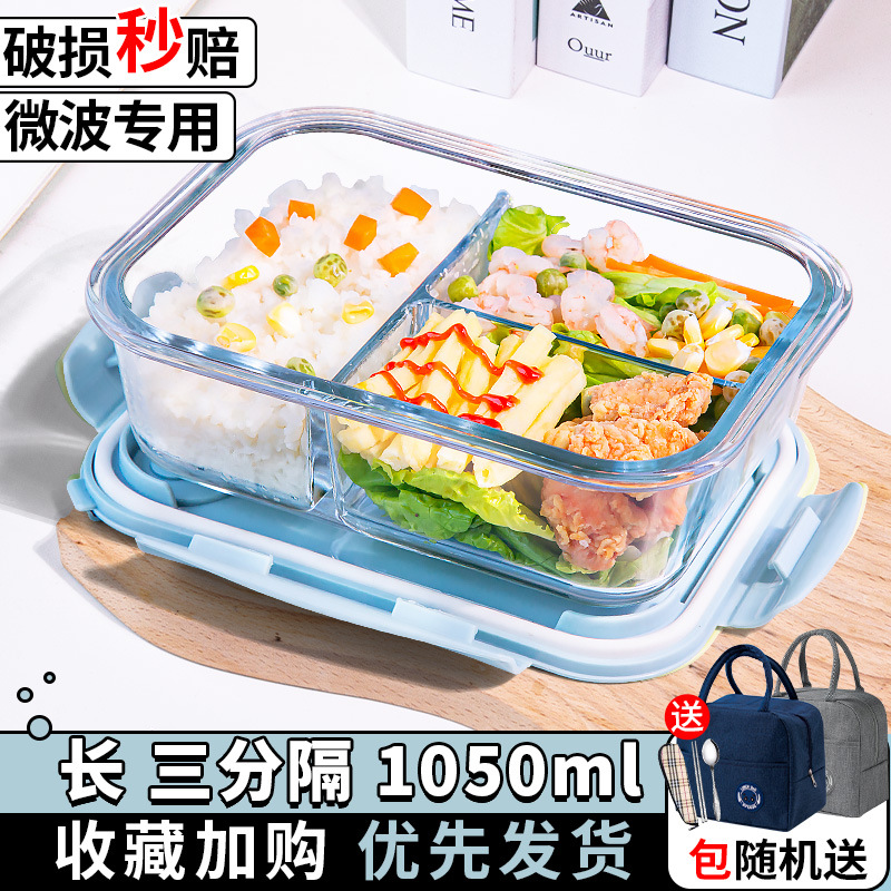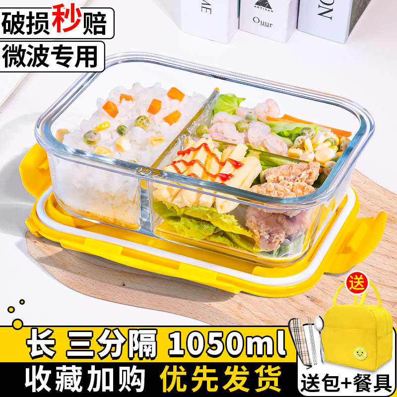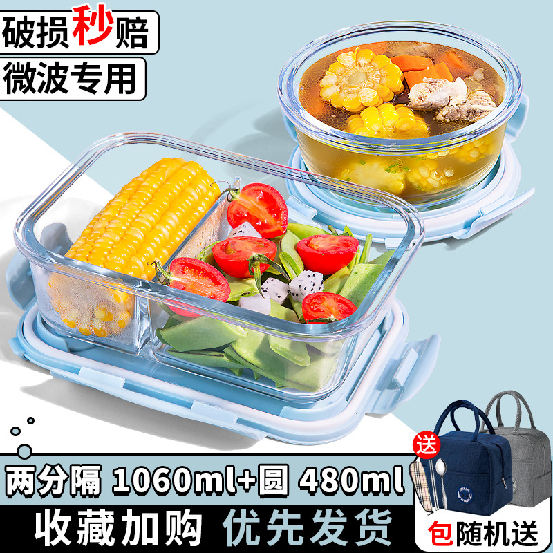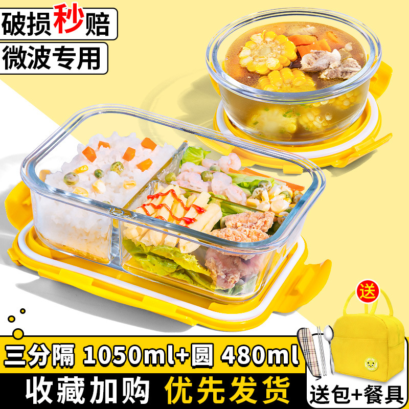 유리 도시락은 전자 레인지로 가열 할 수 있습니다. 사무원을위한 특수 그릇 바이한 Zhe를 분리하기 위해 식사 상자가있는 격리 도시락 상자스토어 가기