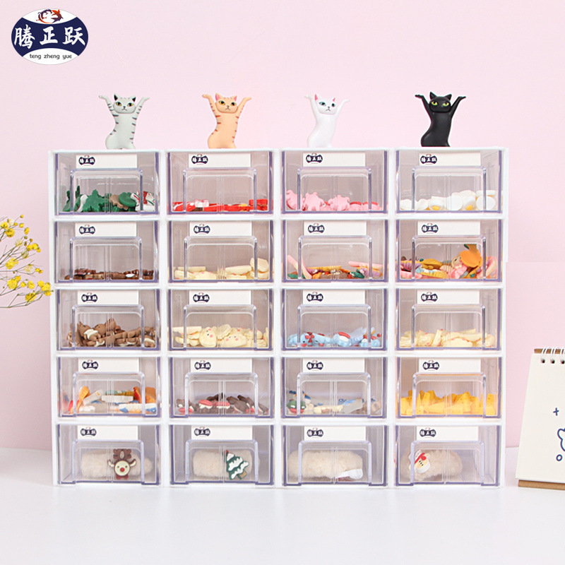 Teng Zhengyue 데스크탑 서랍 형 작은 잡화 보관 상자 창조적 인 DIY 투명 구획 보관 마감 상자 투명