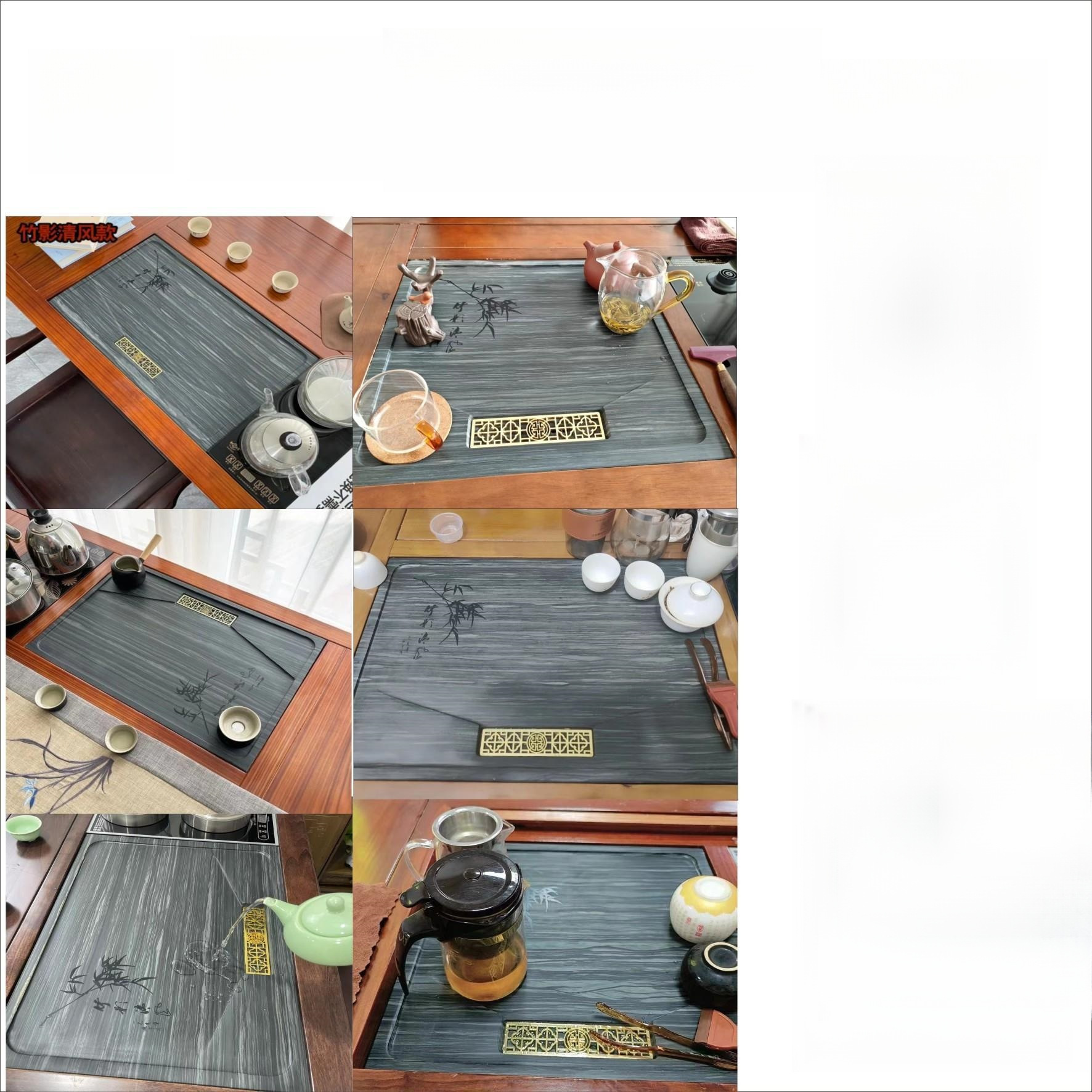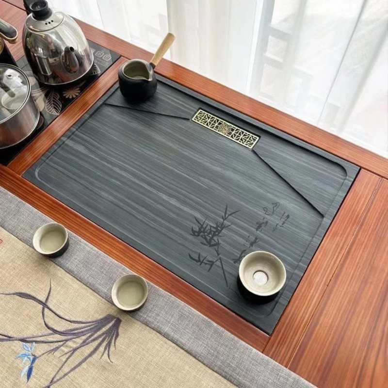 임베디드 티 트레이 티 테이블 임베디드 커버 우드 그레인 스톤 제국 코트 옥석