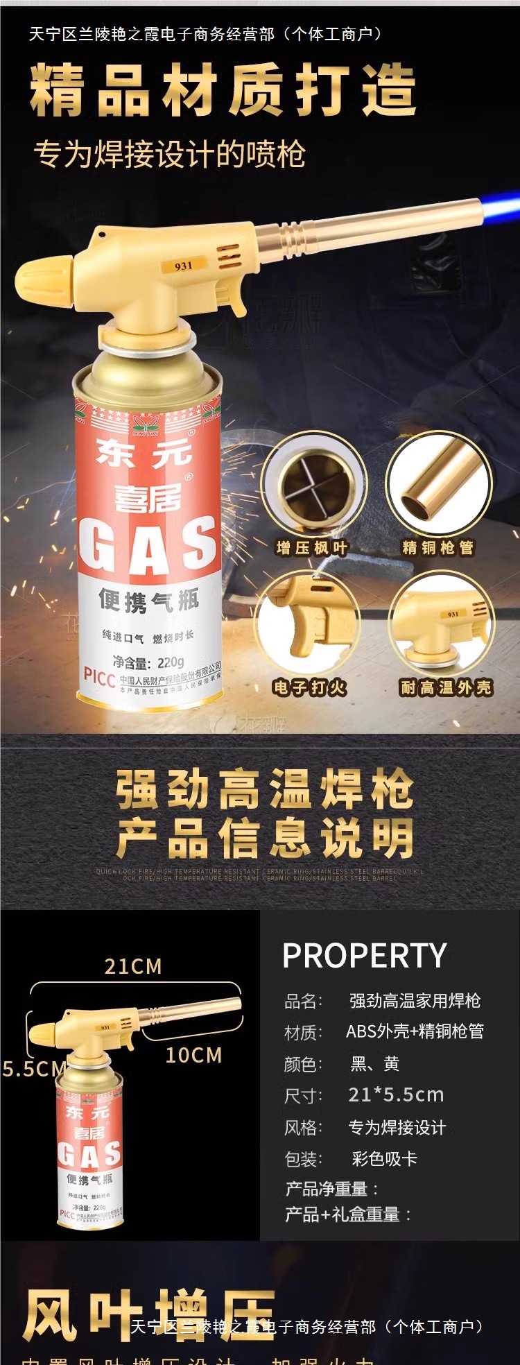 • [반전 가능 + 소프트 파이어 및 하드 파이어] 다기능 건 헤드 + 가스 탱크 1개 + 용접봉 10개