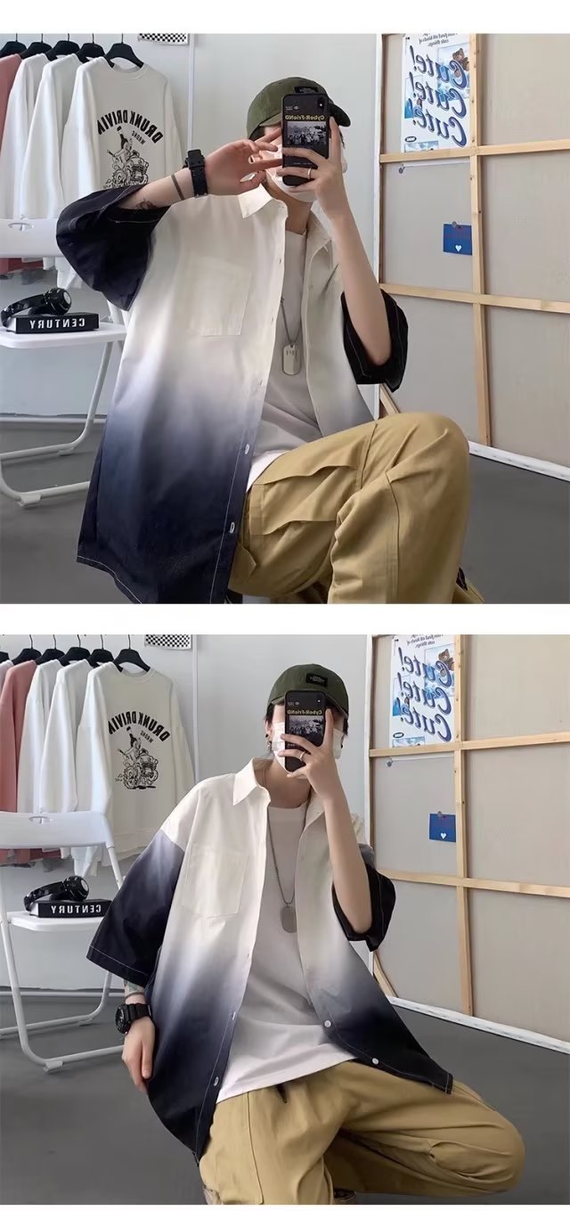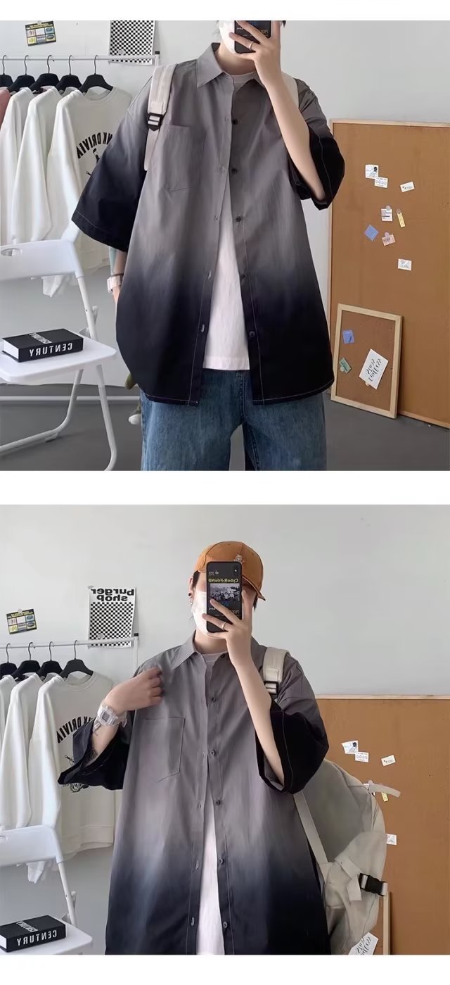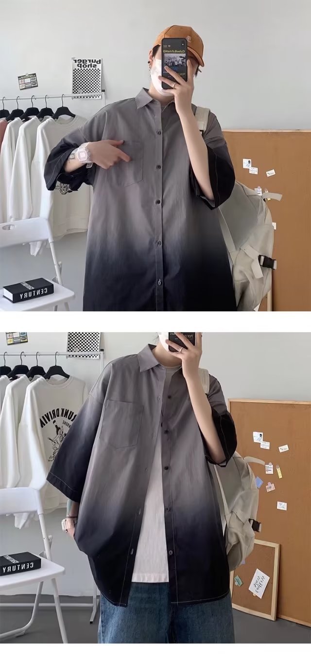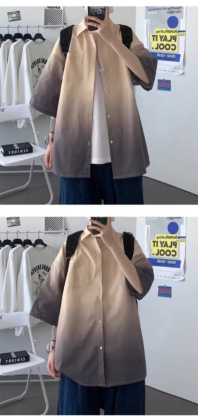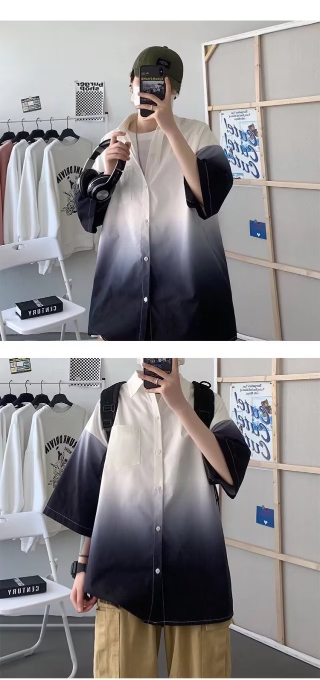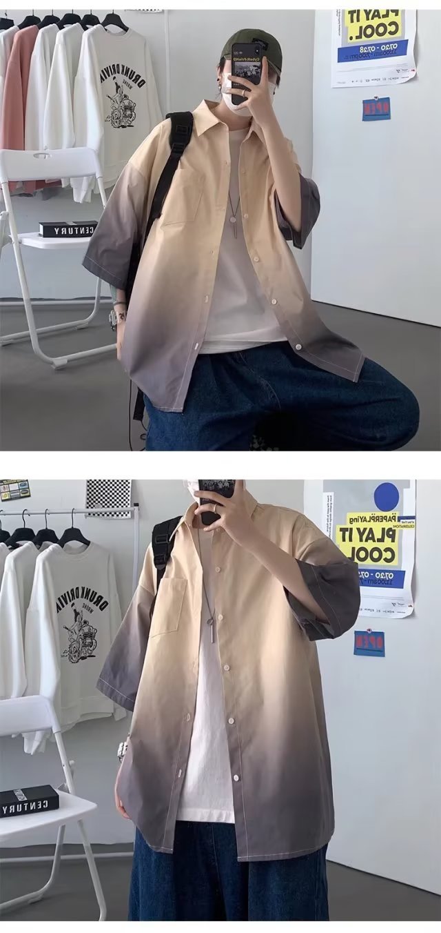 여름 남자 그라디언트 반팔 셔츠 느슨한 홍콩 스타일 반소매 셔츠 유행 플러스 사이즈 스타일 대학 스타일 재킷 반팔 남성스토어 가기