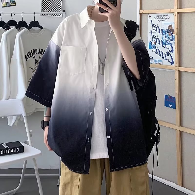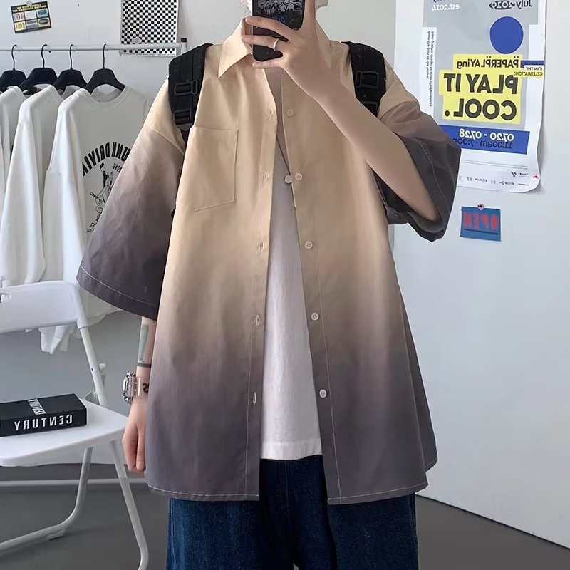 여름 남자 그라디언트 반팔 셔츠 느슨한 홍콩 스타일 반소매 셔츠 유행 플러스 사이즈 스타일 대학 스타일 재킷 반팔 남성