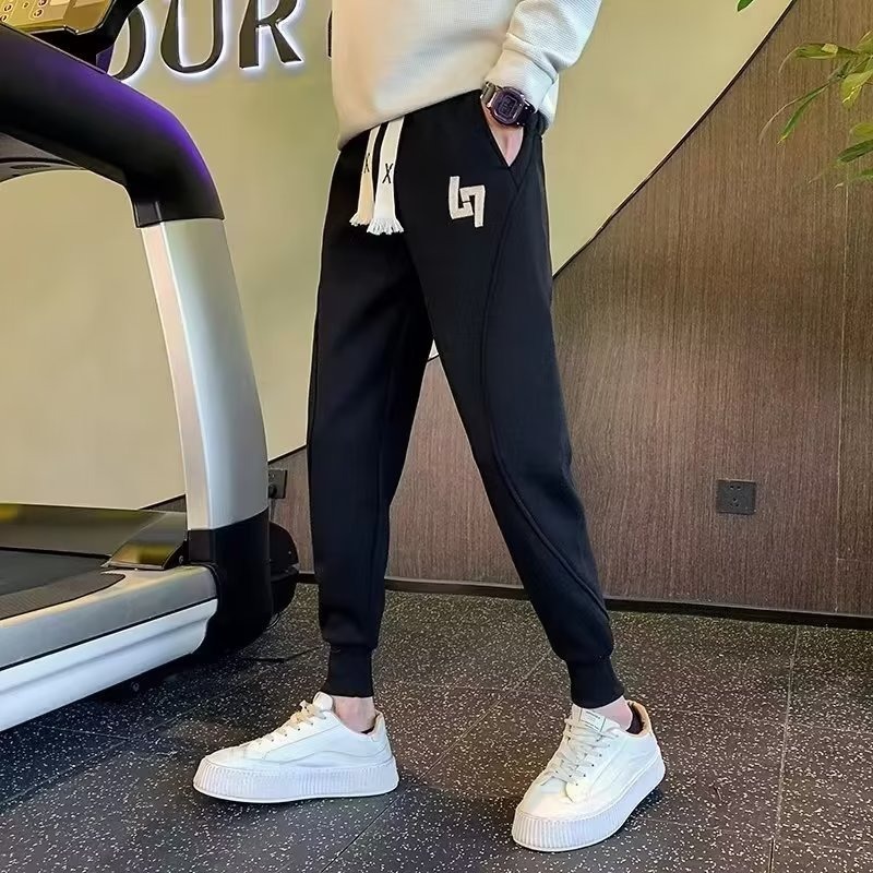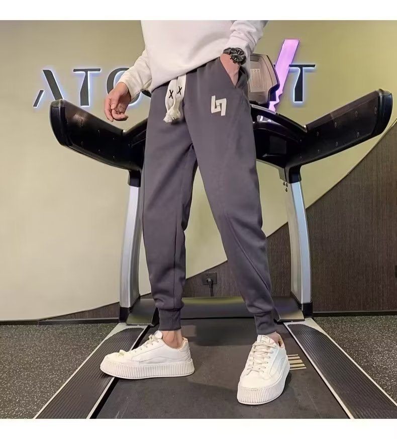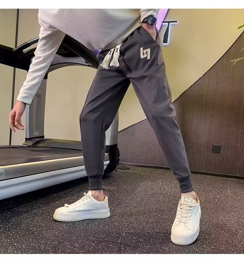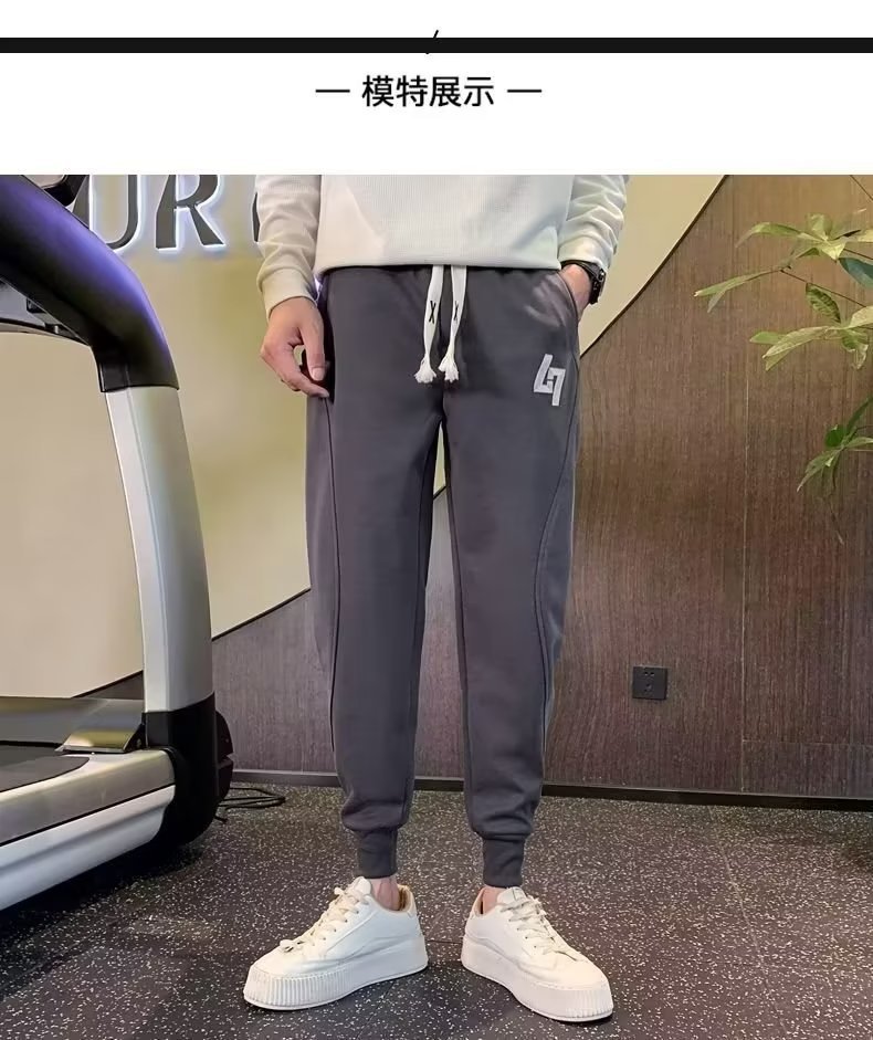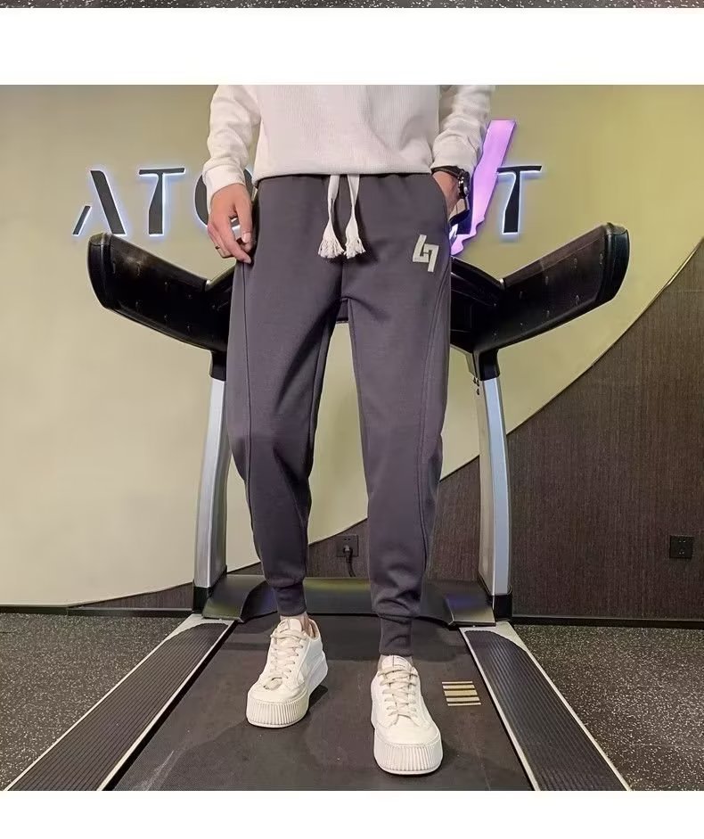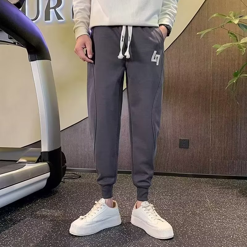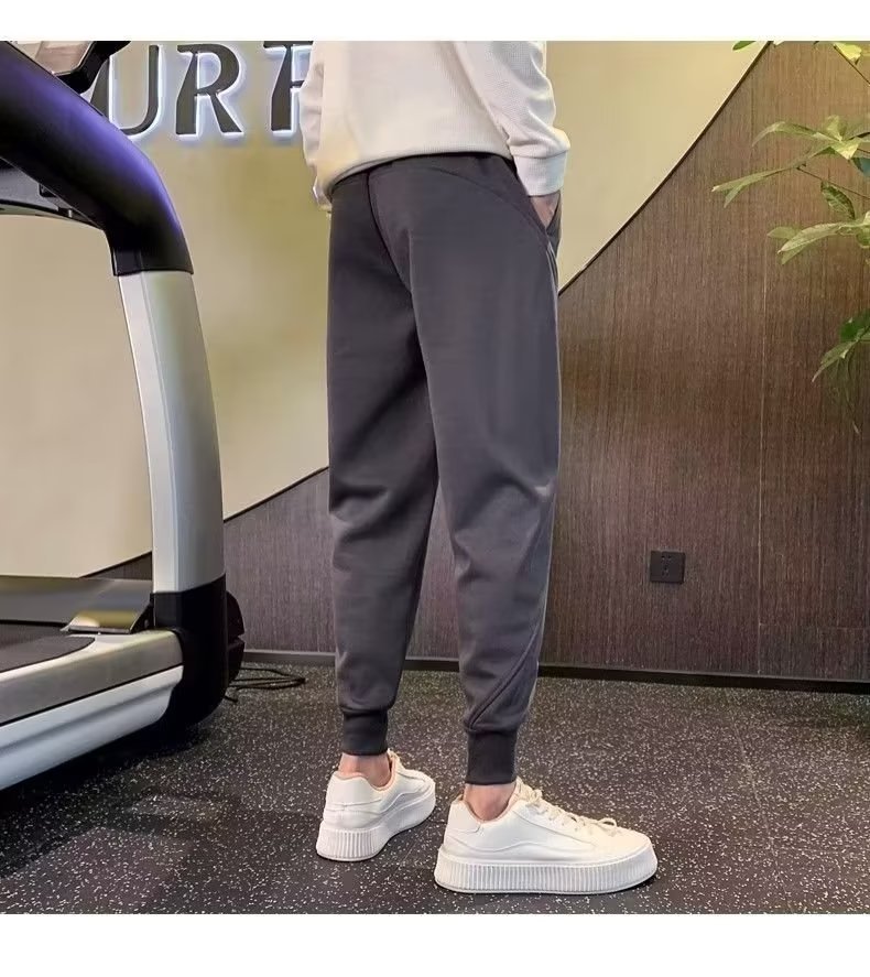 봄과 가을 새로운 패션 그레이 더피 잘 생긴 트렌디 한 땀 바지 슬림핏 캐주얼 바지 스포츠 다리 바지 한국어스토어 가기
