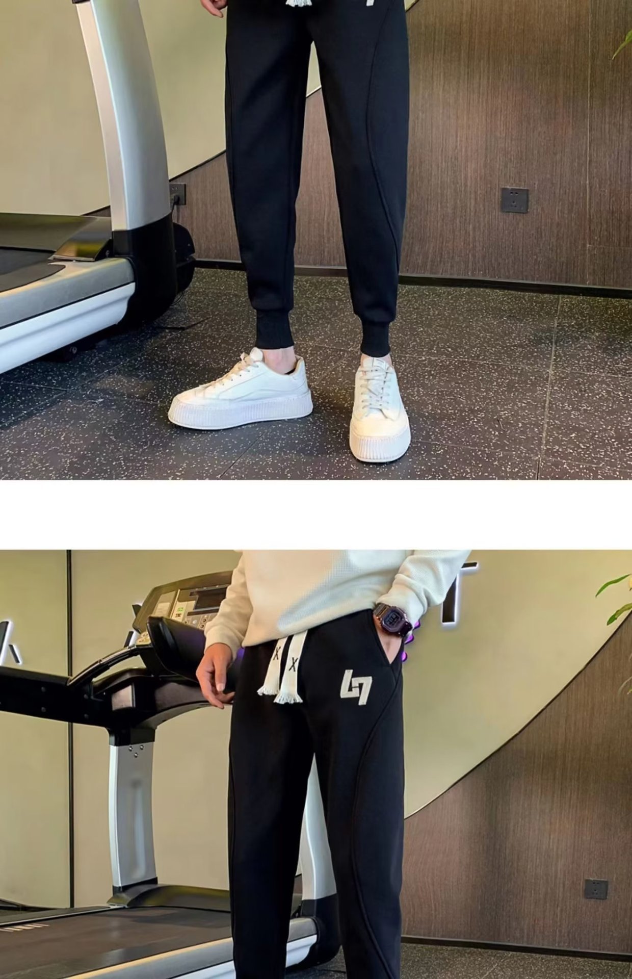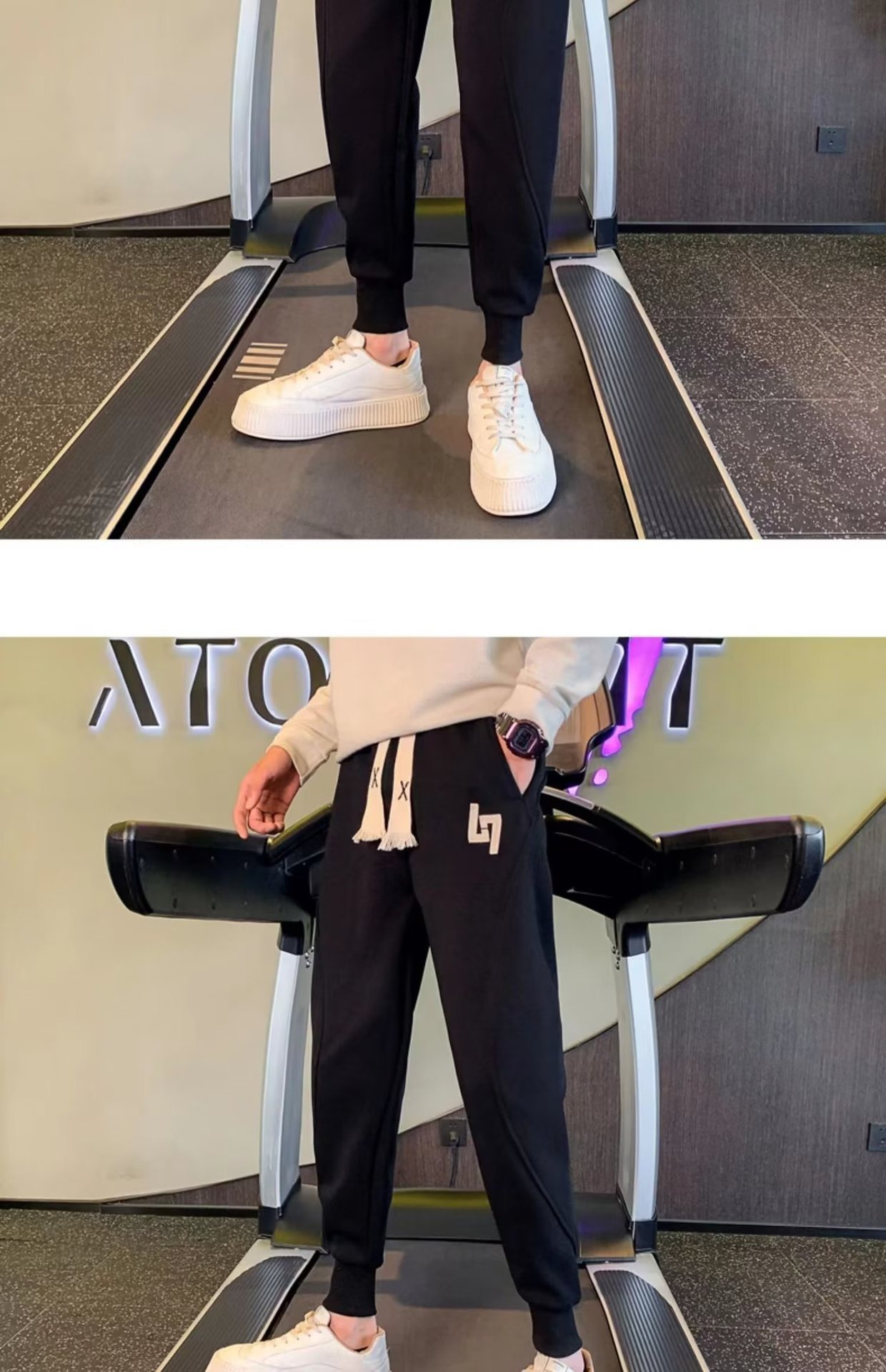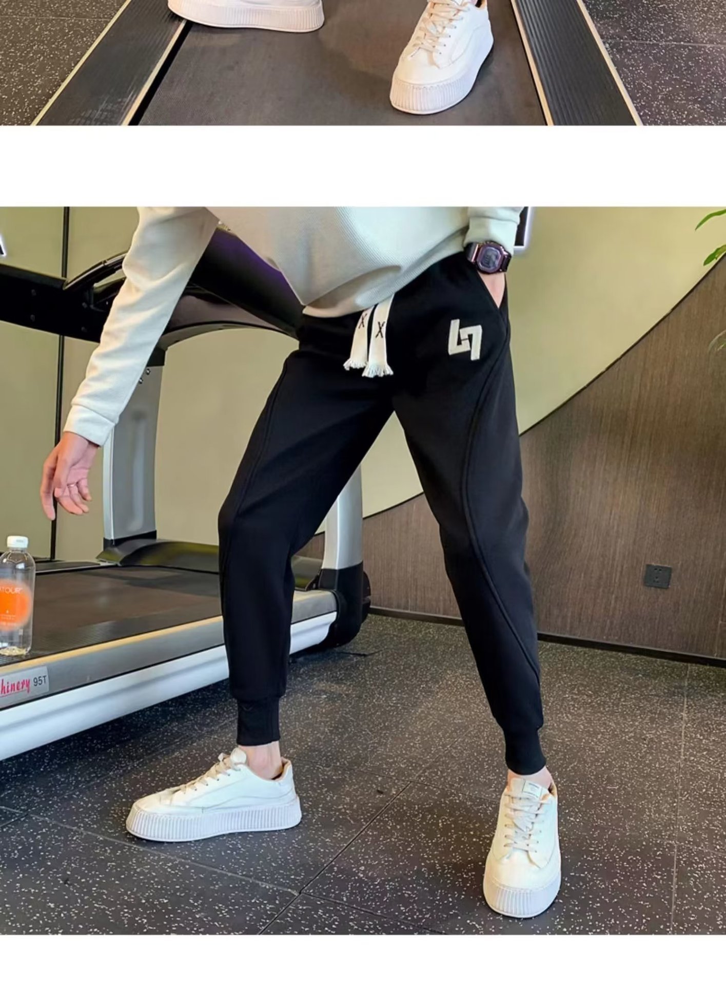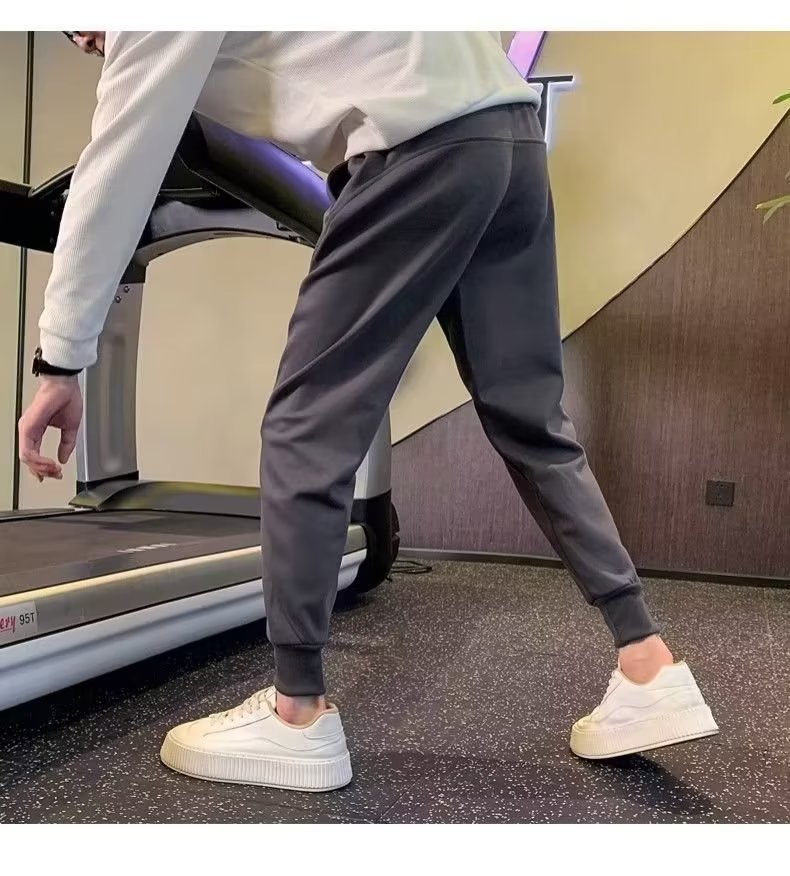 봄과 가을 새로운 패션 그레이 더피 잘 생긴 트렌디 한 땀 바지 슬림핏 캐주얼 바지 스포츠 다리 바지 한국어스토어 가기