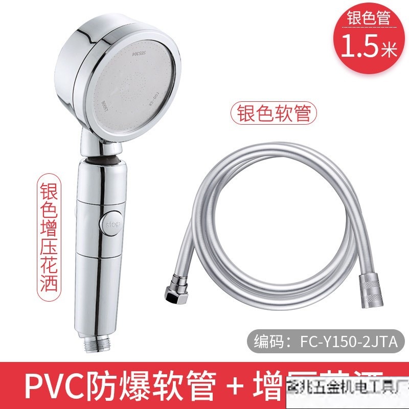 • [10년 보증] 실버 1.5m 호스 + (백색 유량 제한 부스터 노즐)