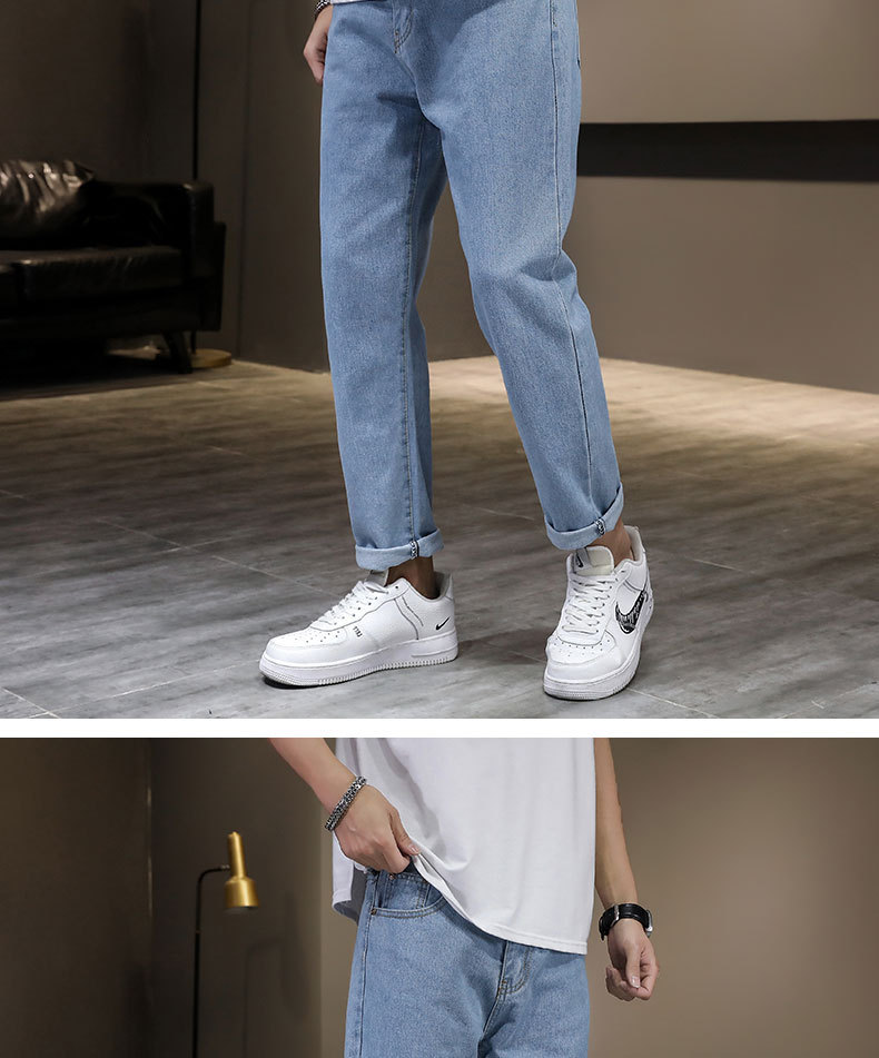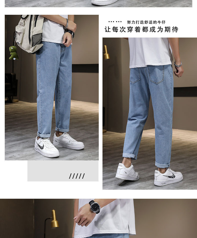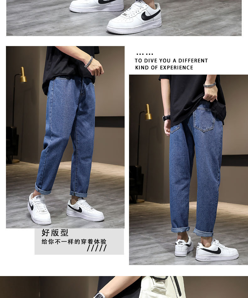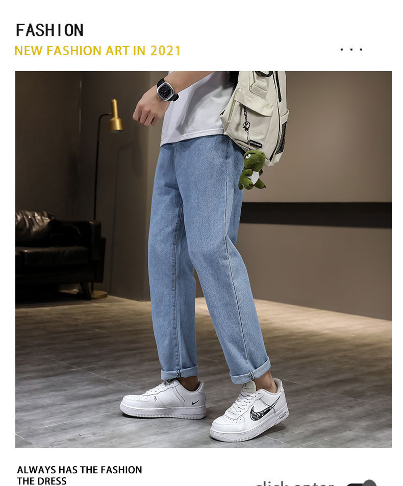 2023 남자 청바지 스트레이트 레그 루즈 한국 패셔너블 와이드 레그 캐주얼 롱 팬츠 남자 봄과 가을 슬림 핏 올매치스토어 가기