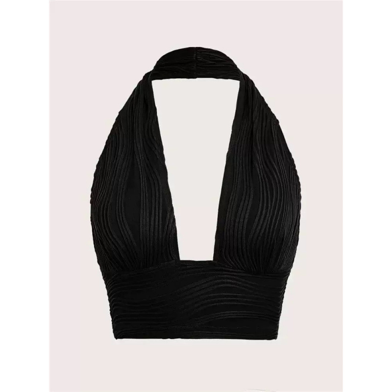 블랙 섹시 핫 걸 딥 홀터 카미 솔 여성 여름 외부 짧은 슬림 핏 내부 핫 민소매 탑 착용