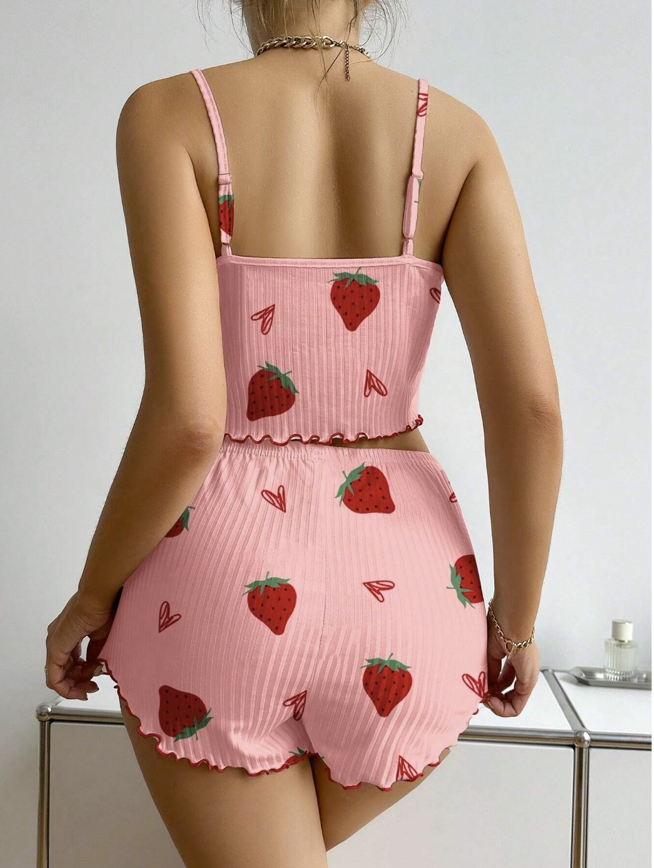 체리 유혹 크로스 보더 핫 셀러 홈 의류 사랑 인쇄 슬링 반바지 캐주얼 아웃웨어 여성용 파자마 세트