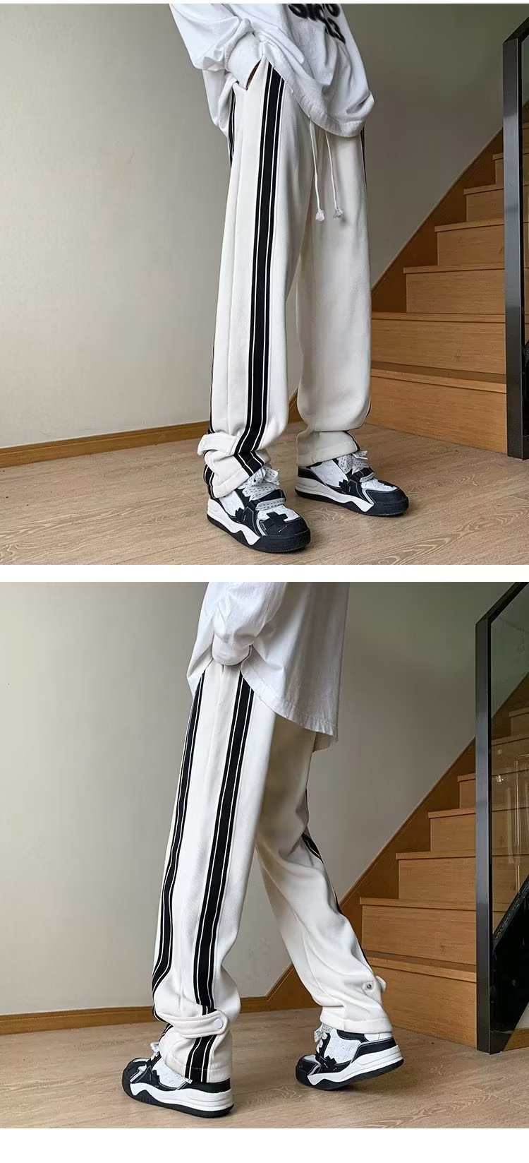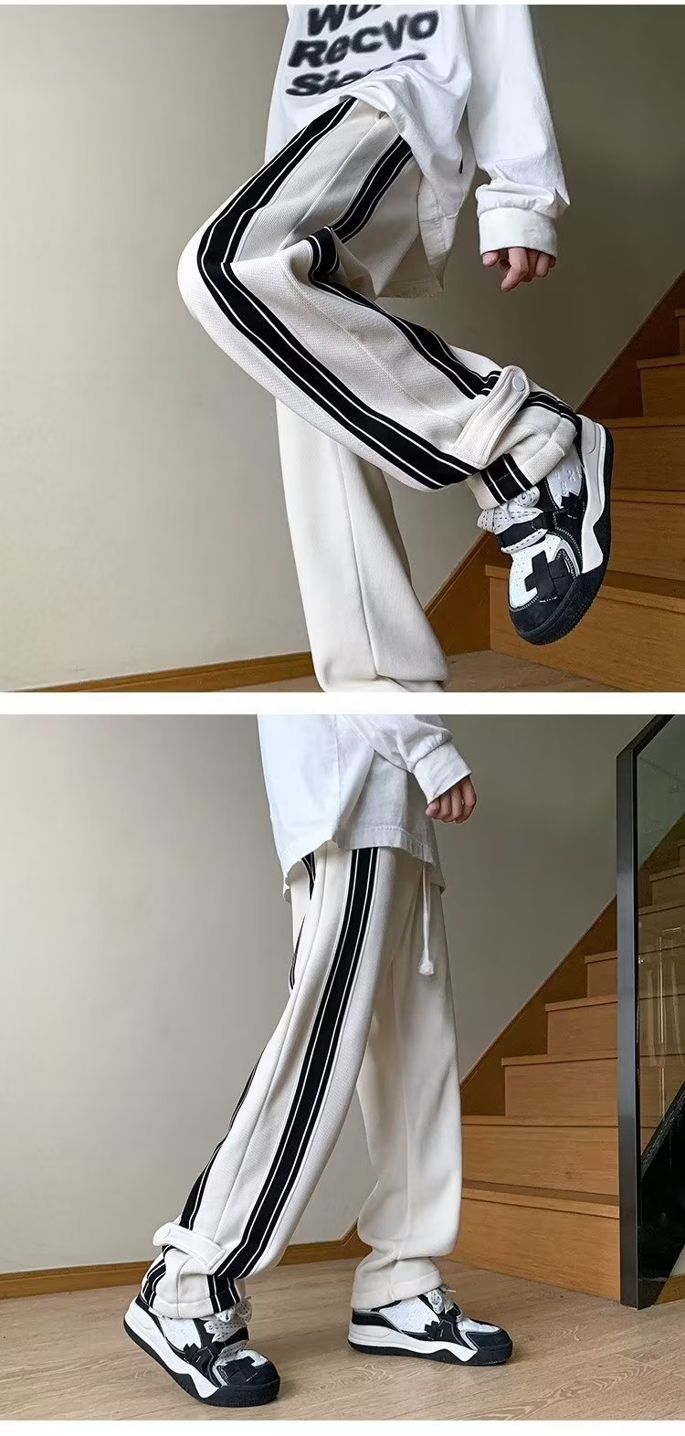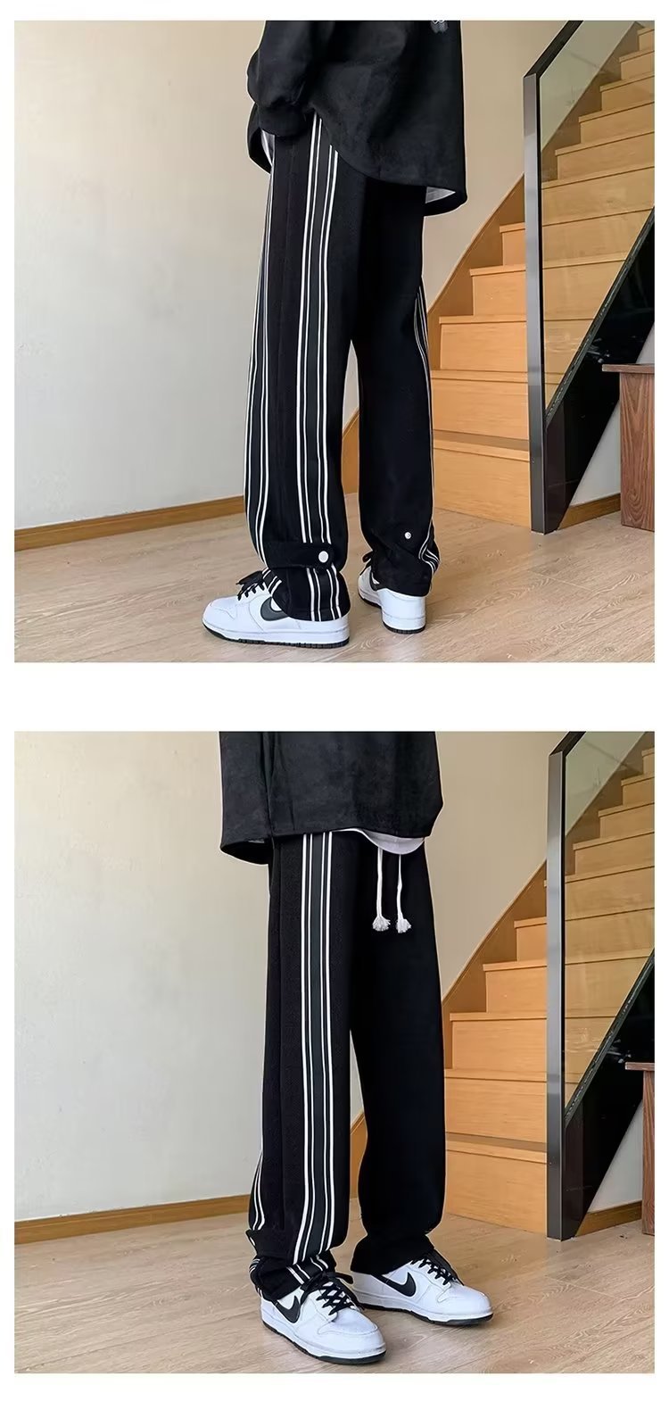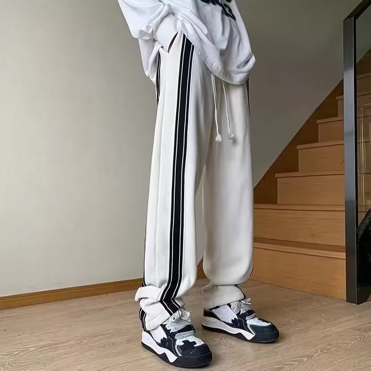봄과 가을 스포츠 바지 남자 아메리칸 스타일 하이 스트리트 패션 브랜드 스트레이트 바지 틈새 디자인 센스 루즈 캐주얼 와이드 다리 바지스토어 가기