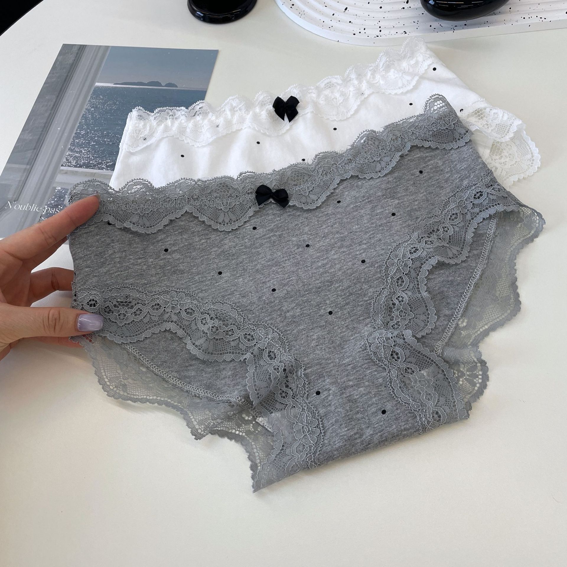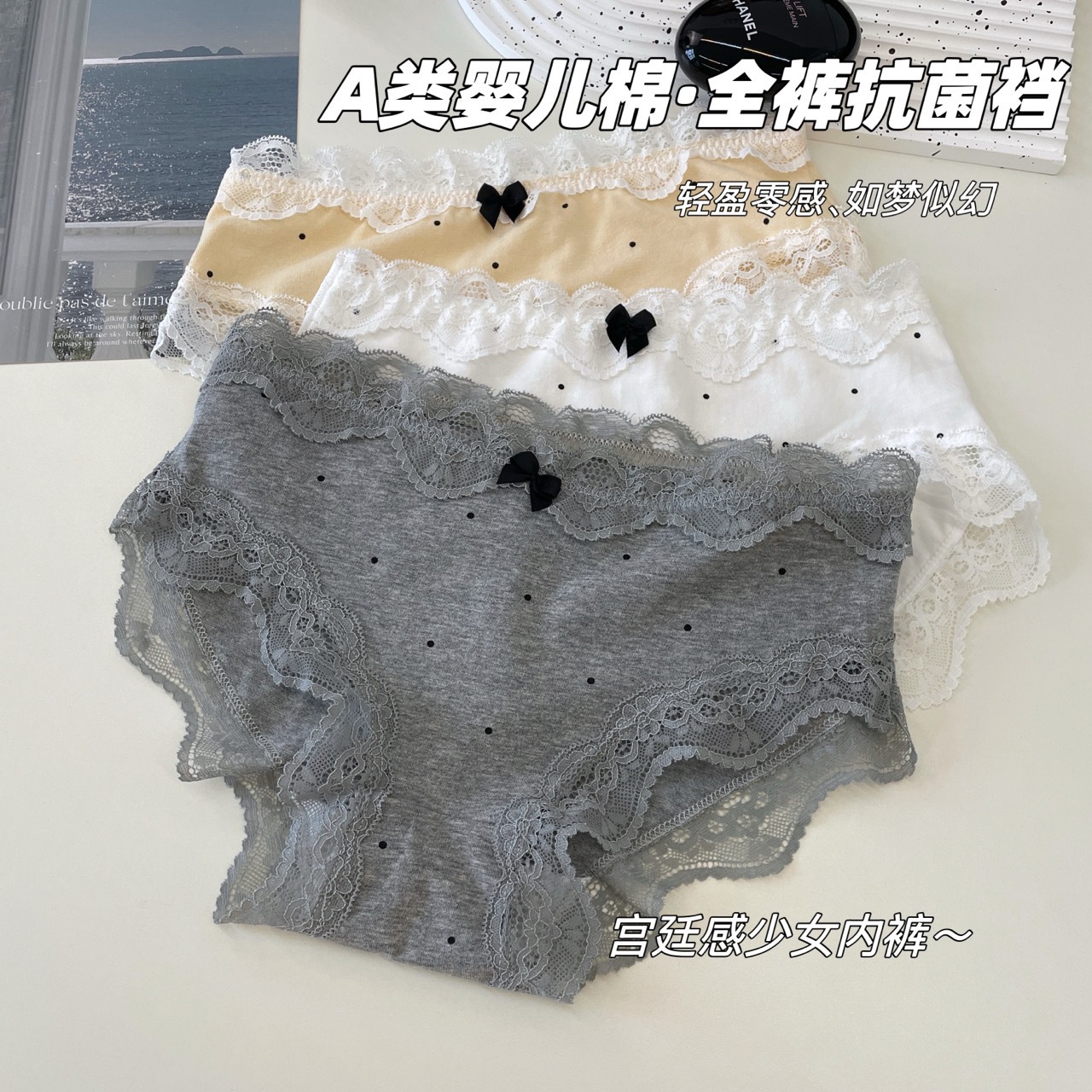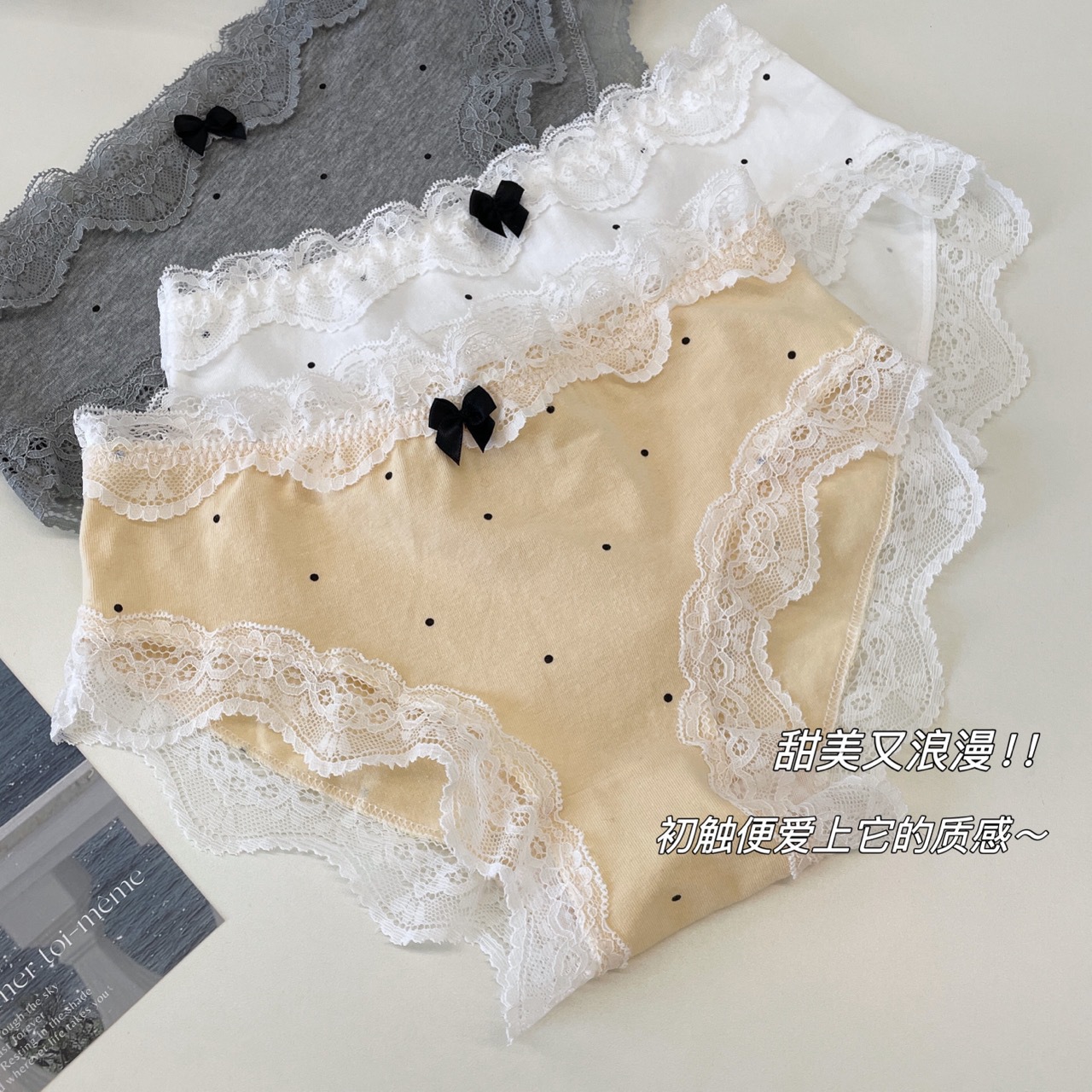 실제 샷 7A 항균 프랑스 웨이브 포인트 코튼 속옷 여성의면 가랑이 소녀 간단한 중간 허리 섹시한 여성 브리프스토어 가기