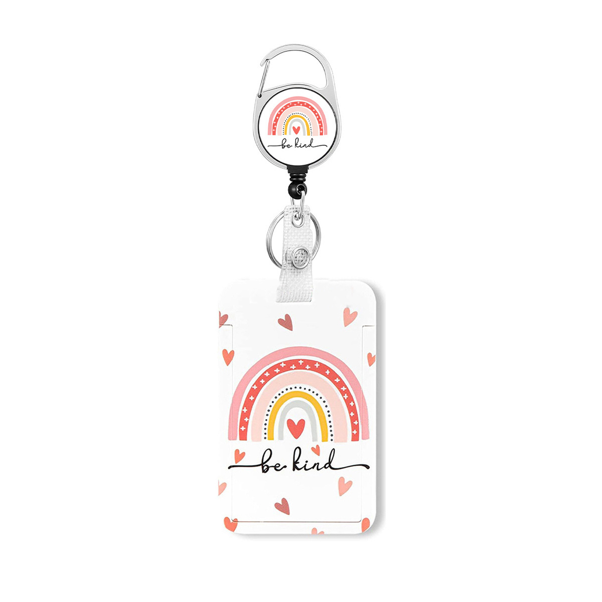 국경 간 무지개 당기기 쉬운 ID 카드 세트 개폐식 배지 릴 쉬운 버클 ID 세트 직원 ID 홀더