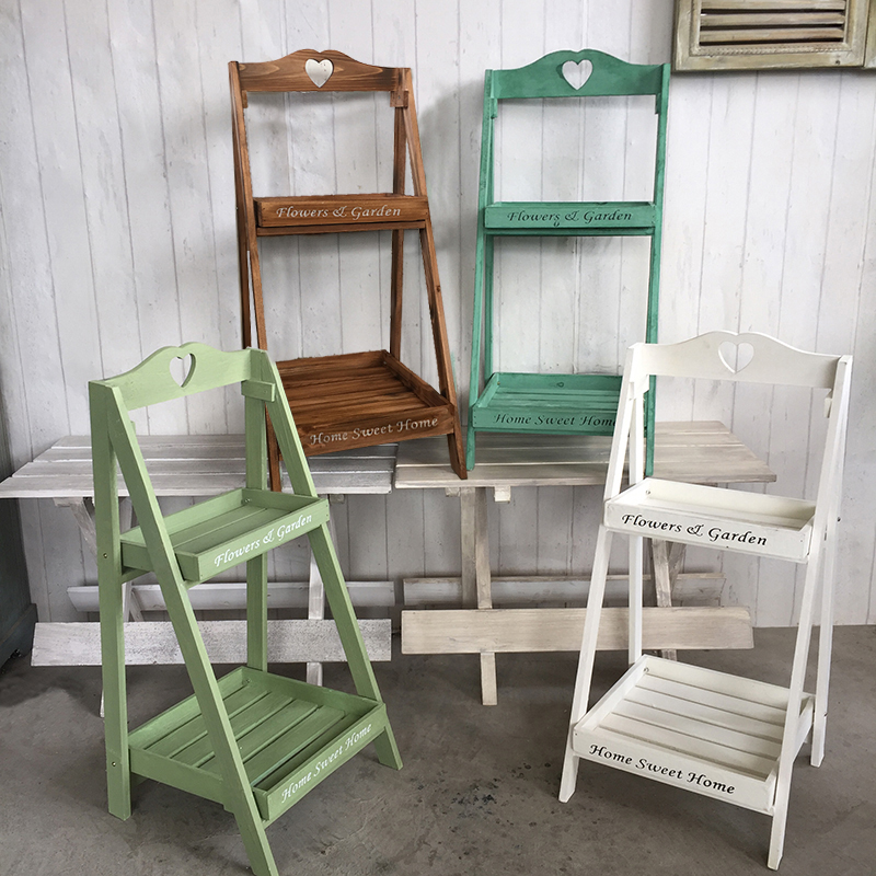 아메리칸 스타일 컨트리 레트로 솔리드 우드 플라워 랙 여러 단계 플로어 투 플로어 멀티 레이어 스퀘어 스토리지 선반 발코니 꽃 테이블스토어 가기